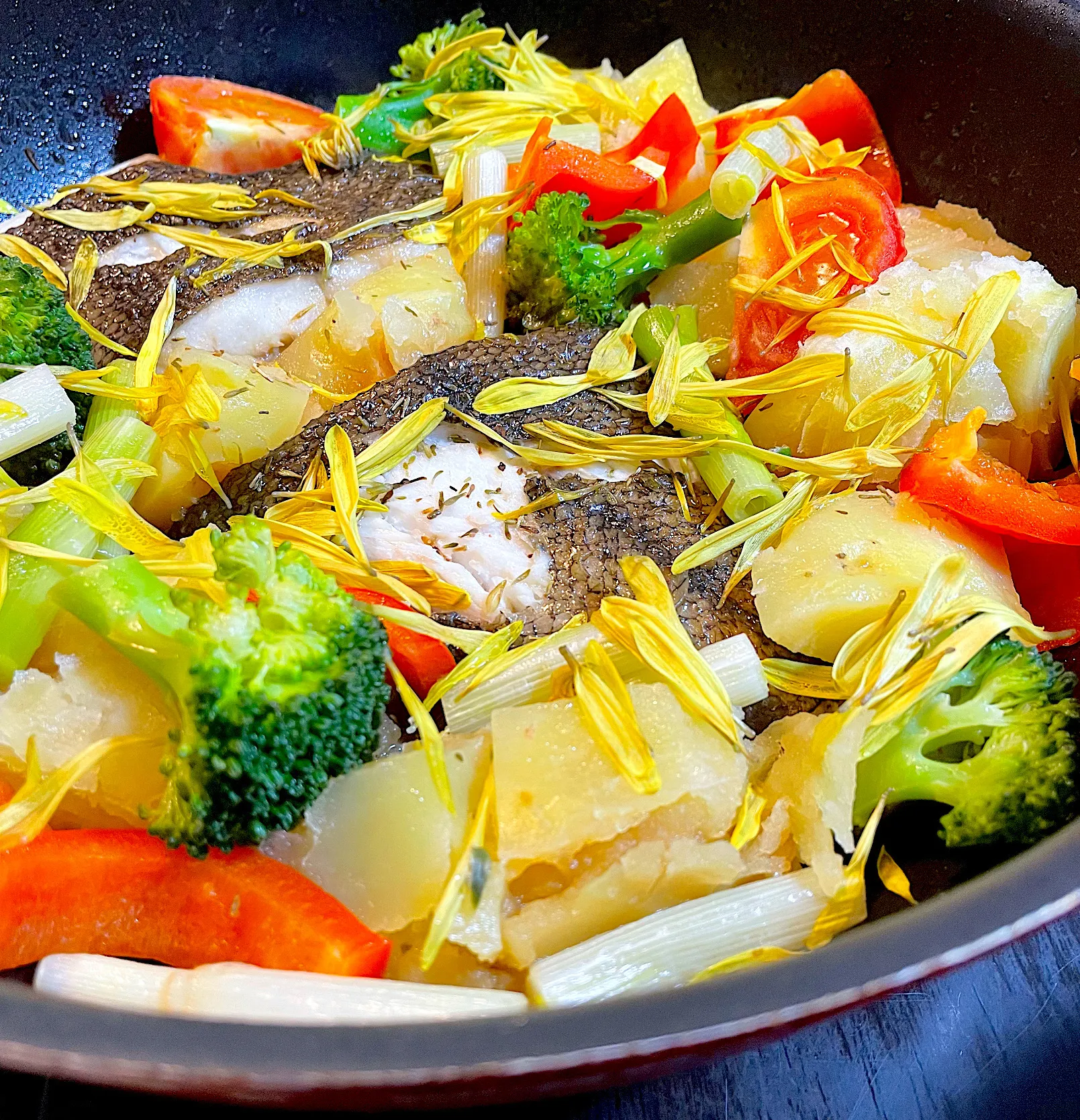 #鰈 #カレイ #アクアパッツァ #じゃがいも #トマト #パプリカ #ブロッコリー