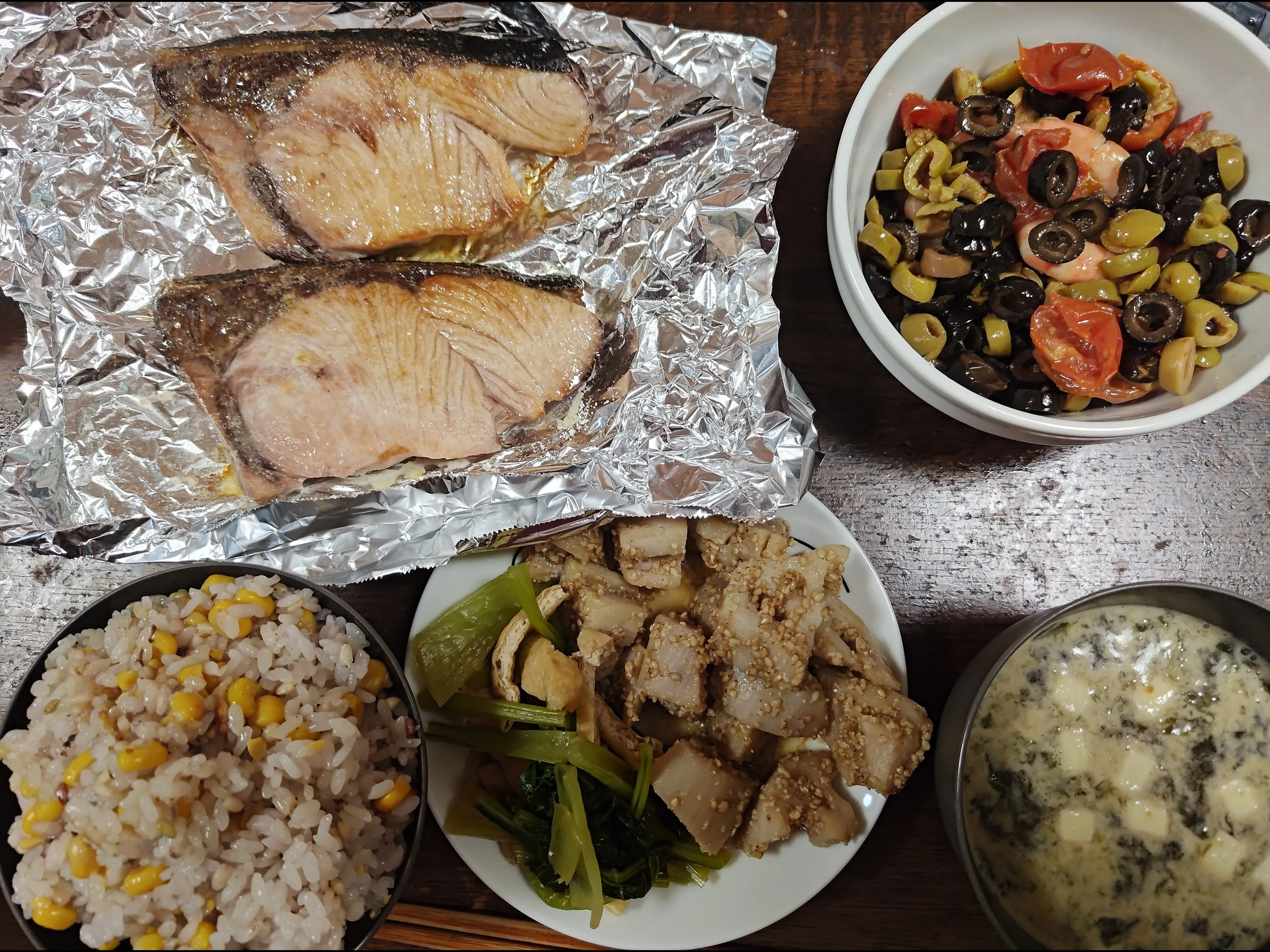 #夕飯 #ぶりの塩焼き #とうもろこしご飯