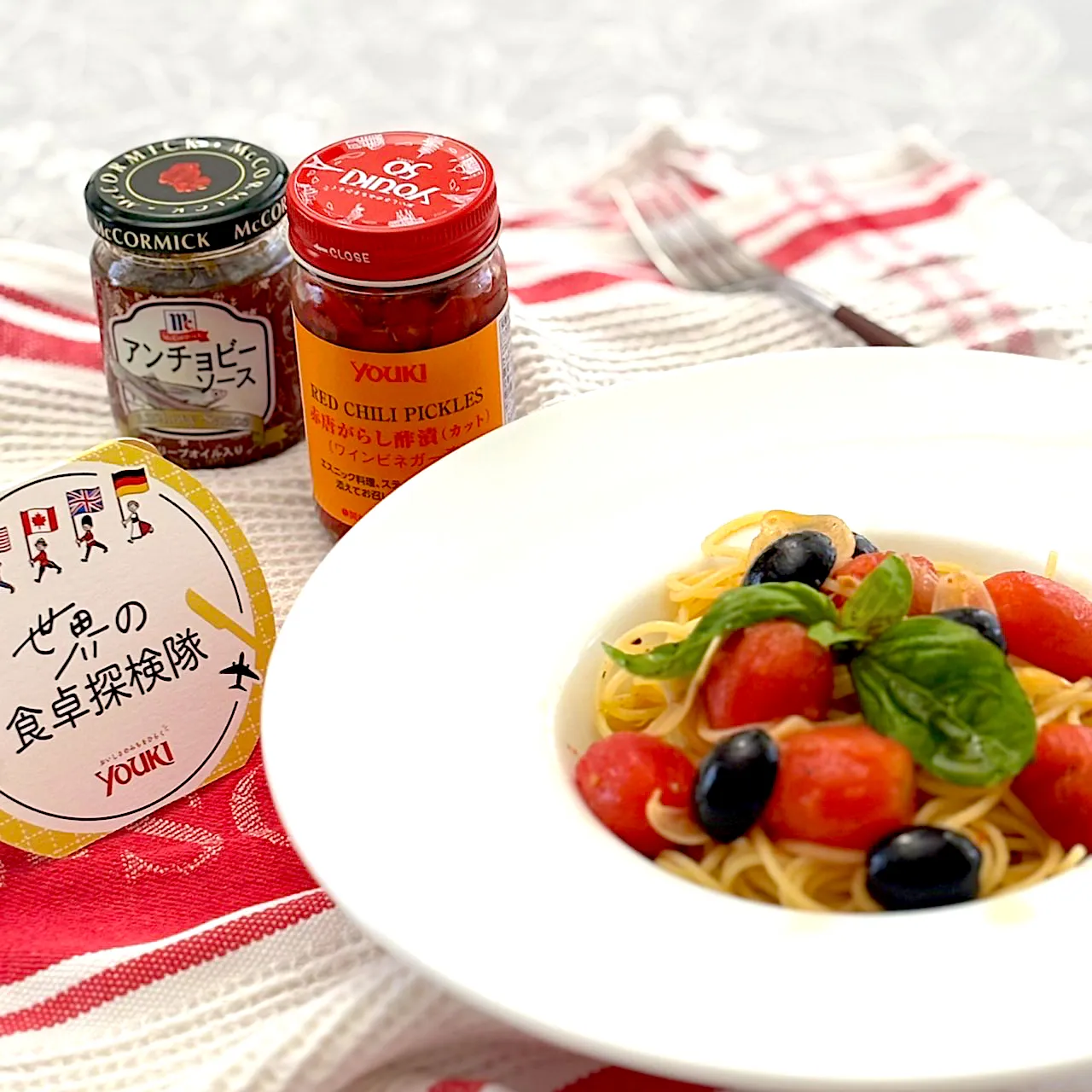 #世界の食卓探検隊 #ユウキ食品 #ミニエキストラバージンオリーブオイル #赤唐がらしカット(酢漬) #MCアンチョビソース #登志子のキッチン