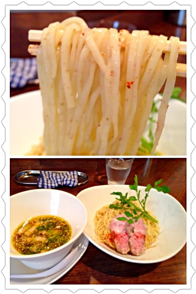 なんか喉越しの良い麺に、極シンプルな醤油つけ汁が合う、結構美味い。
