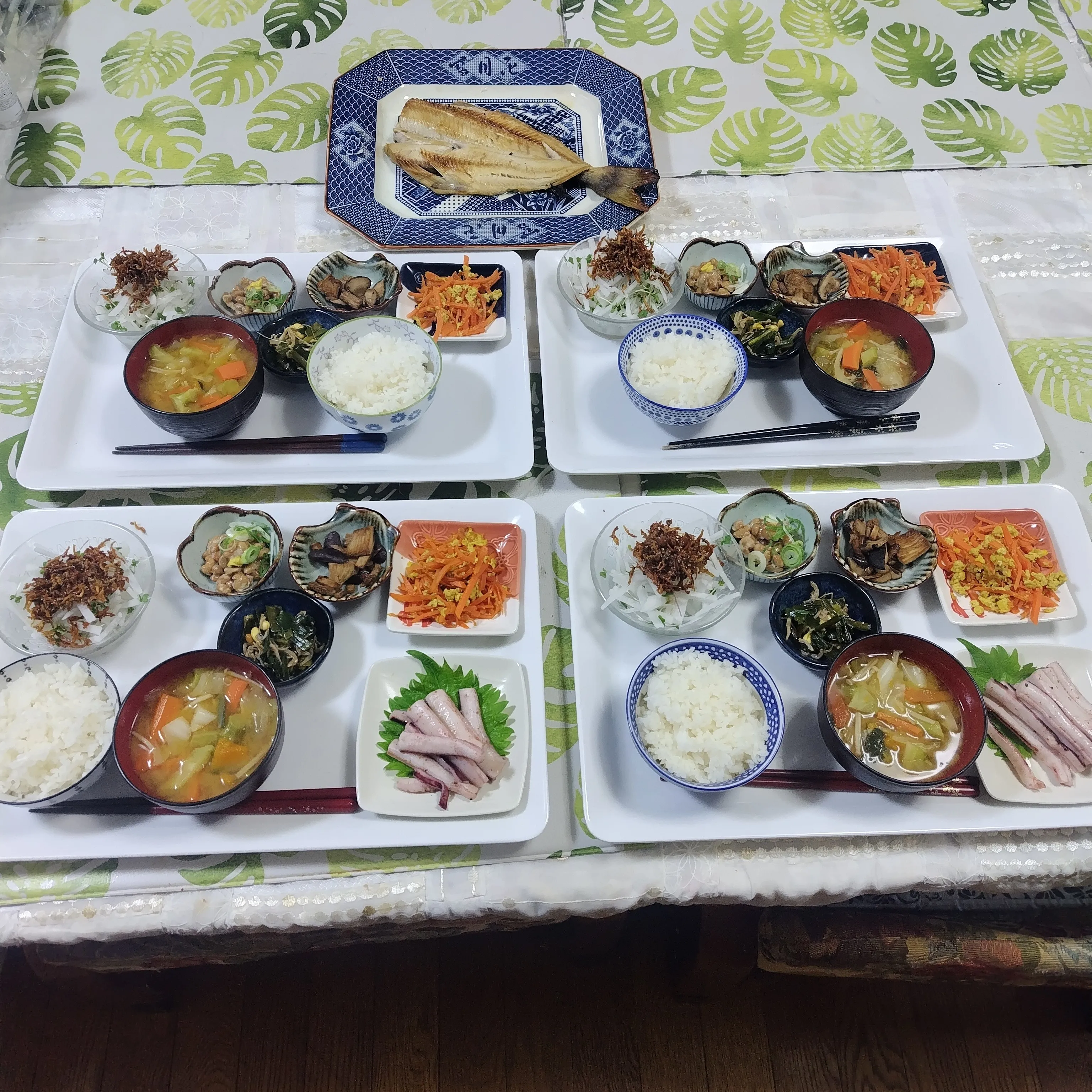 パパと息子、大きな焼ほっけ付き、私と娘は、イカ焼です✨