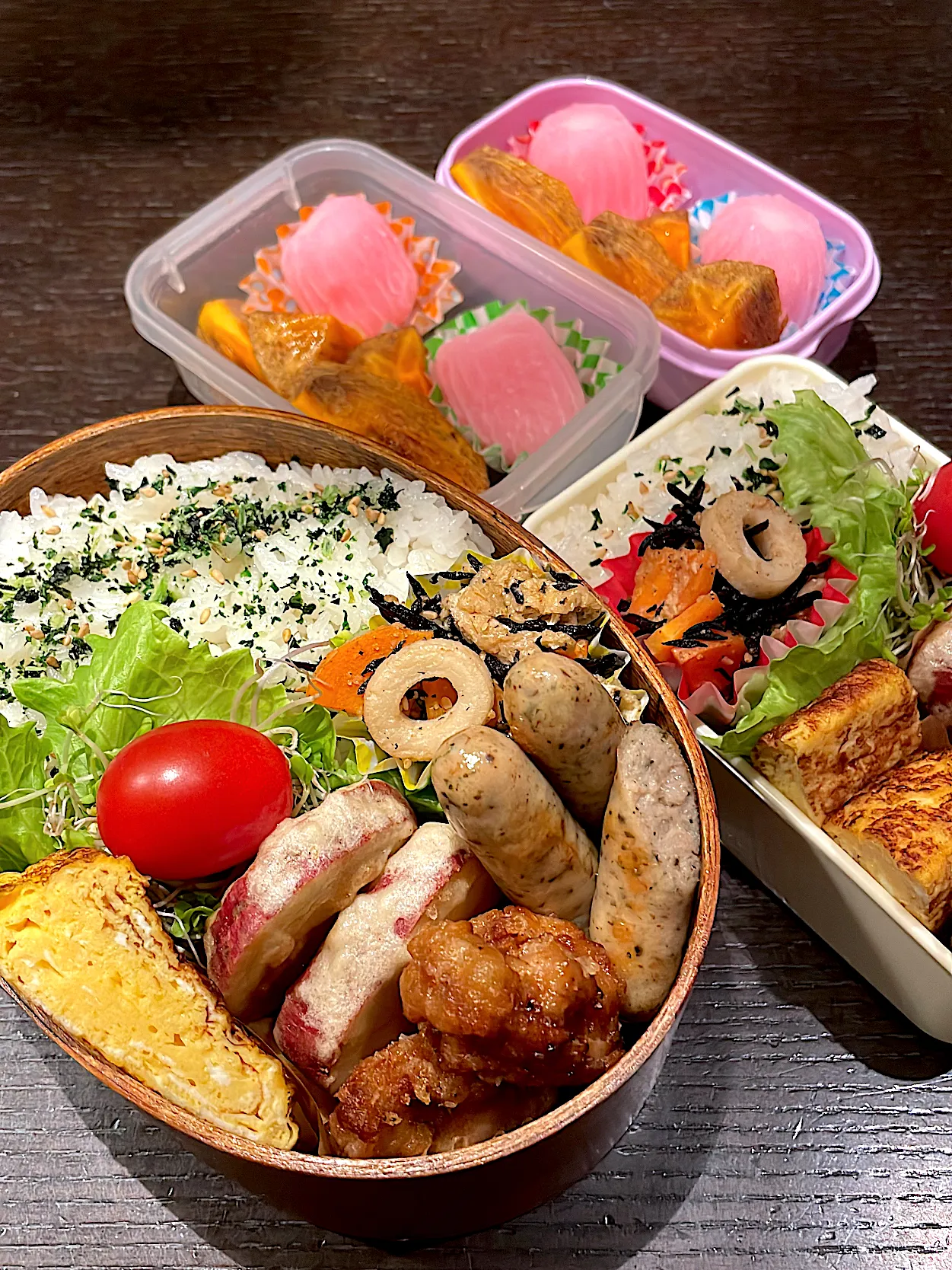 唐揚げとおいも天のお弁当|雑草シェリーさん