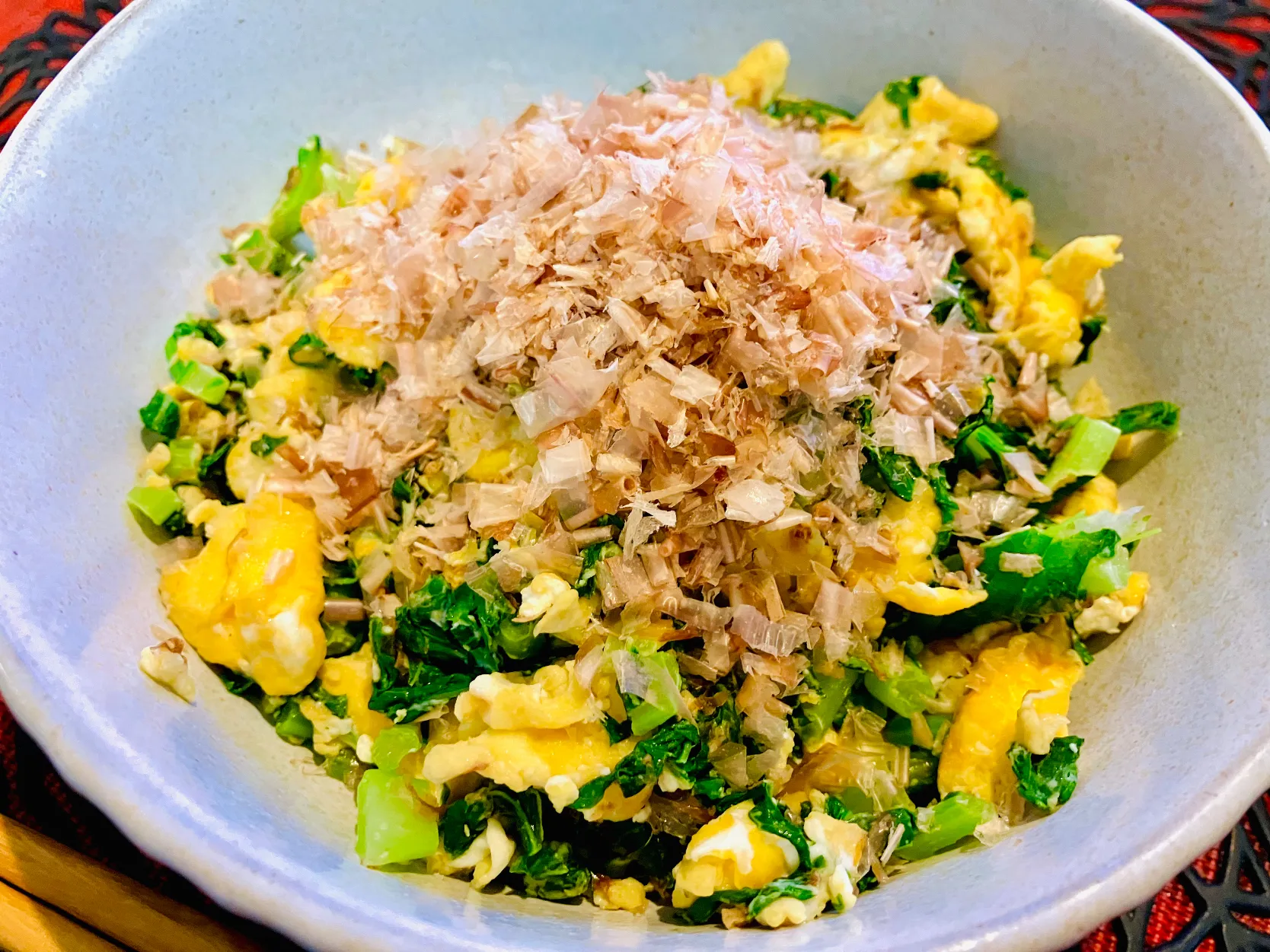 #たまご #大根の葉 #醤油 #かつお節