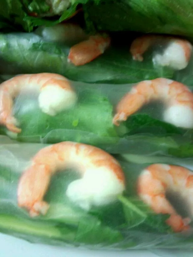 中身は、エビ、アボカド、にんじん、蒸し鶏