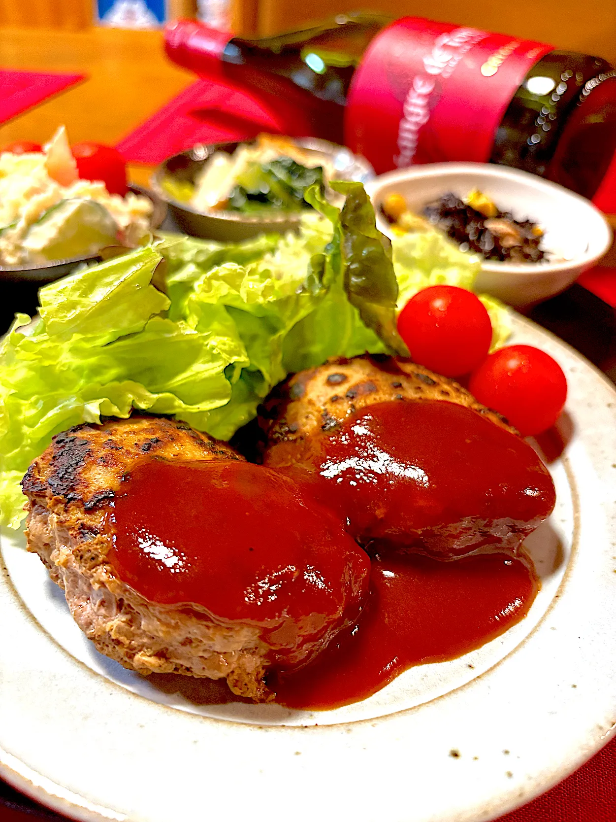 ハンバーグ2個(*≧∀≦*)🎶