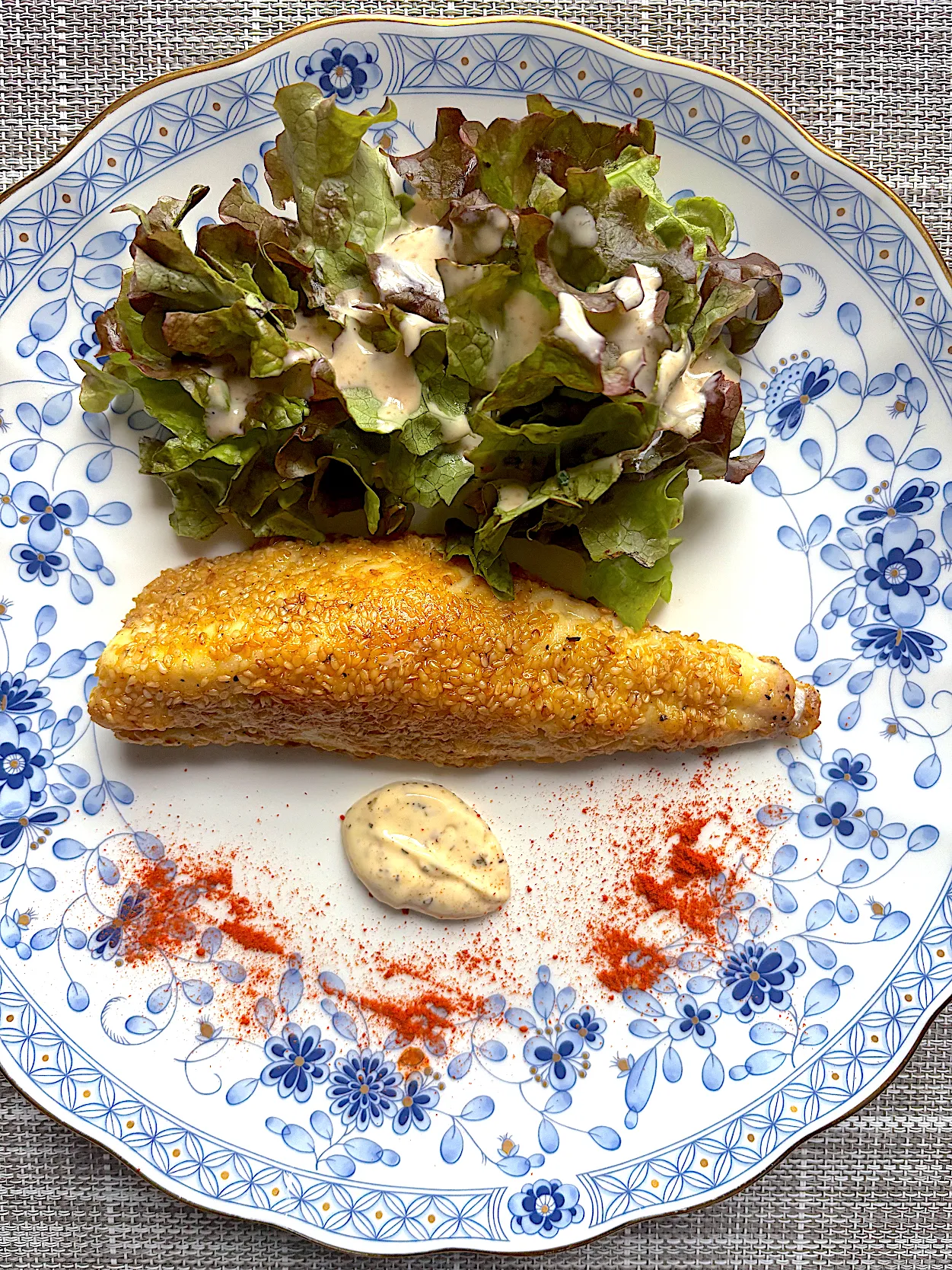 淡白だけど、身がふわっとして、食べると胡麻の風味が広がりハーブマヨを付けるとイタリアンに!