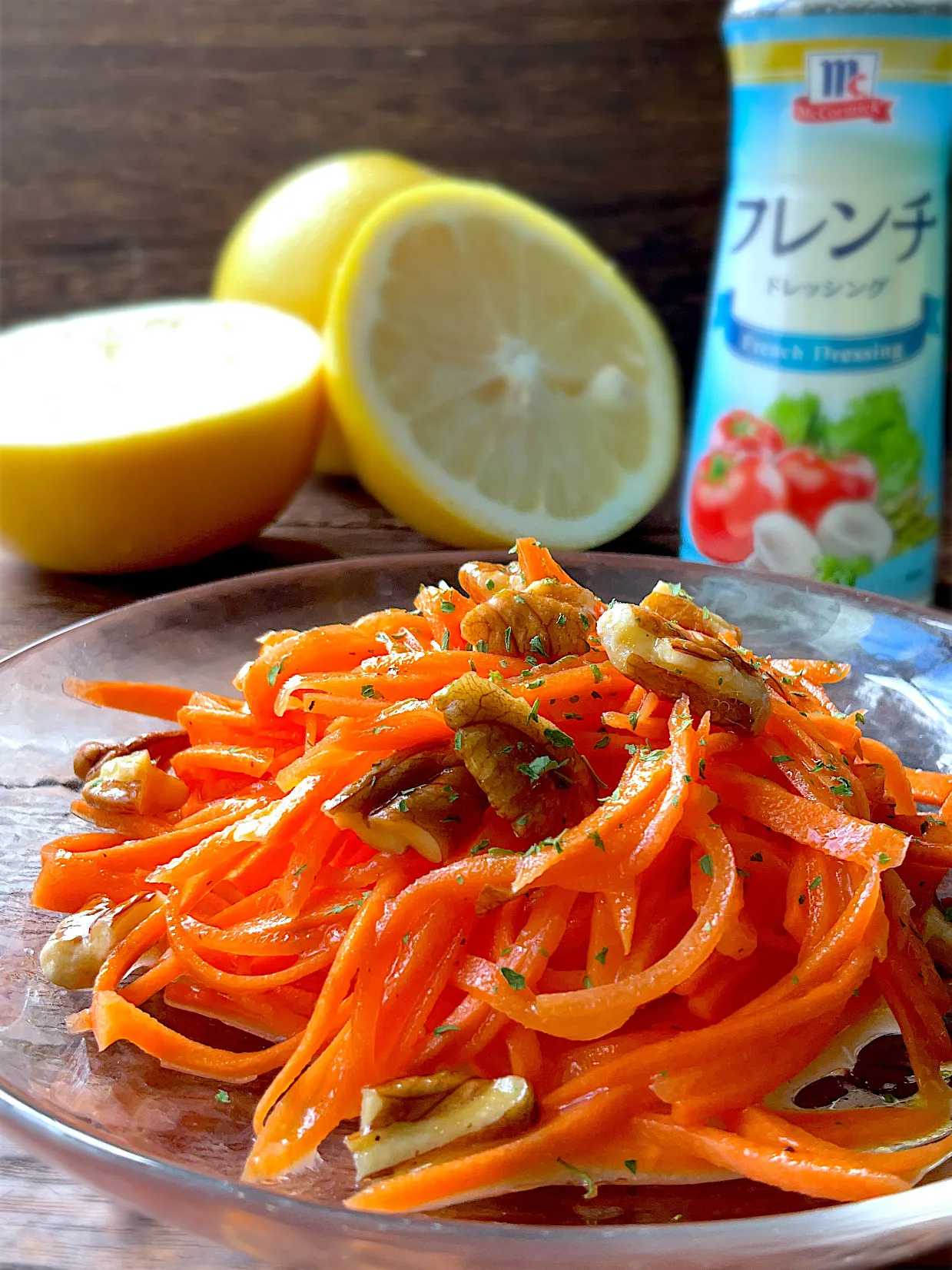 #snapdish #ユウキ食品#おいしい世界ごはんパートナー #世界調味料パスポート #フレンチドレッシング #ドレッシング #にんじん #キャロットラペ #ピーカンナッツ