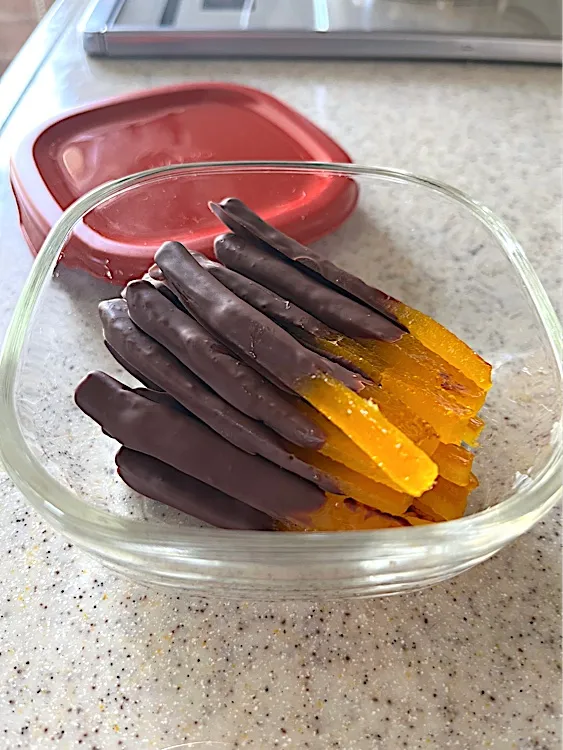 金曜日に作ったピールを冷蔵庫で乾かして、今日チョコレートつけました😊