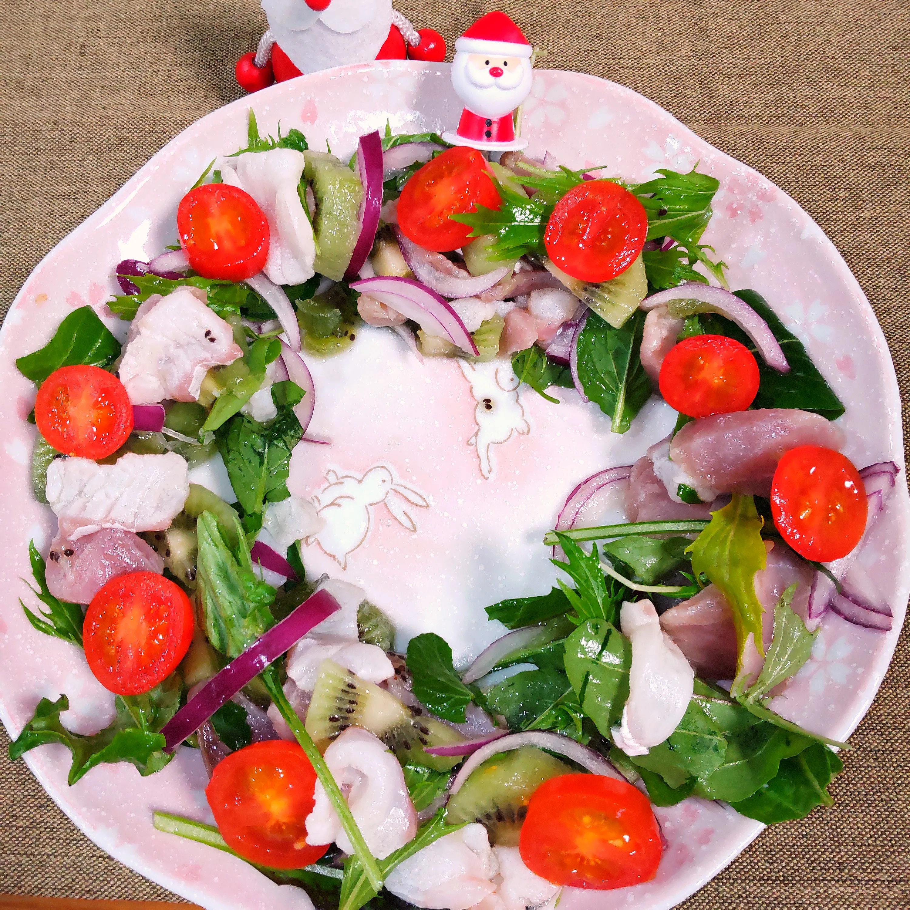置く。 さらにミニトマトでリースの飾り代用として華やかさをだします。
