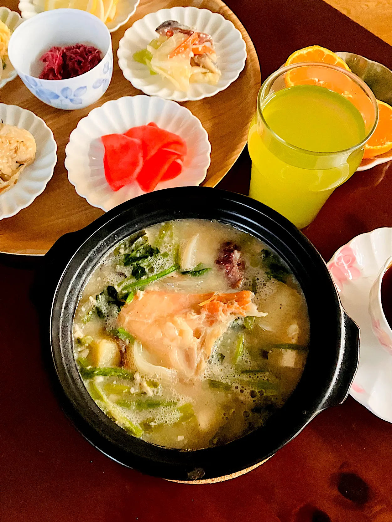 食べるものは全て薬膳です💪 #snapdish #「食卓を紡ぐおたより便」キャンペーン #朝ごはん #鮭の粕汁