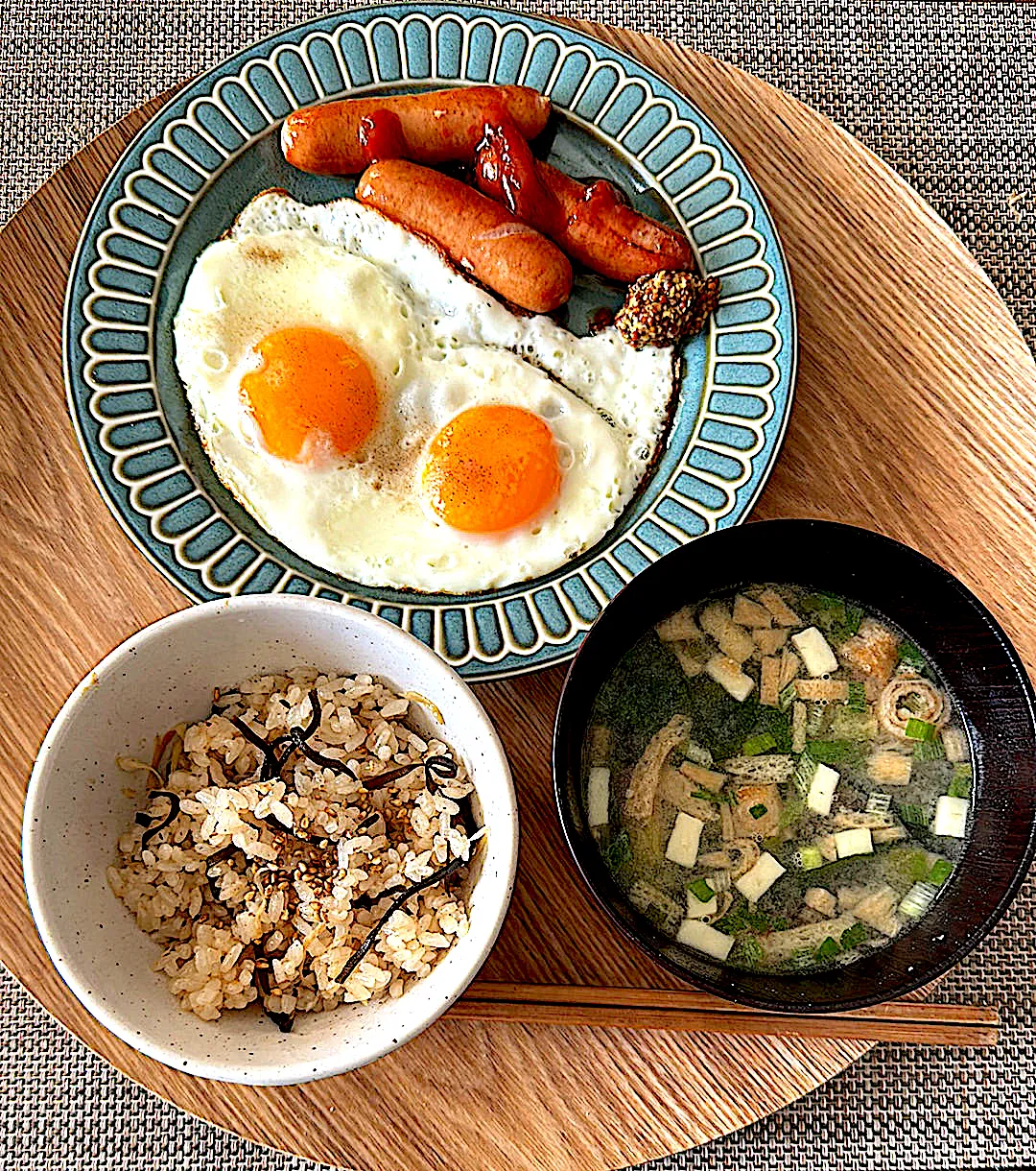 定番目玉焼きとウィンナーと簡単お味噌汁