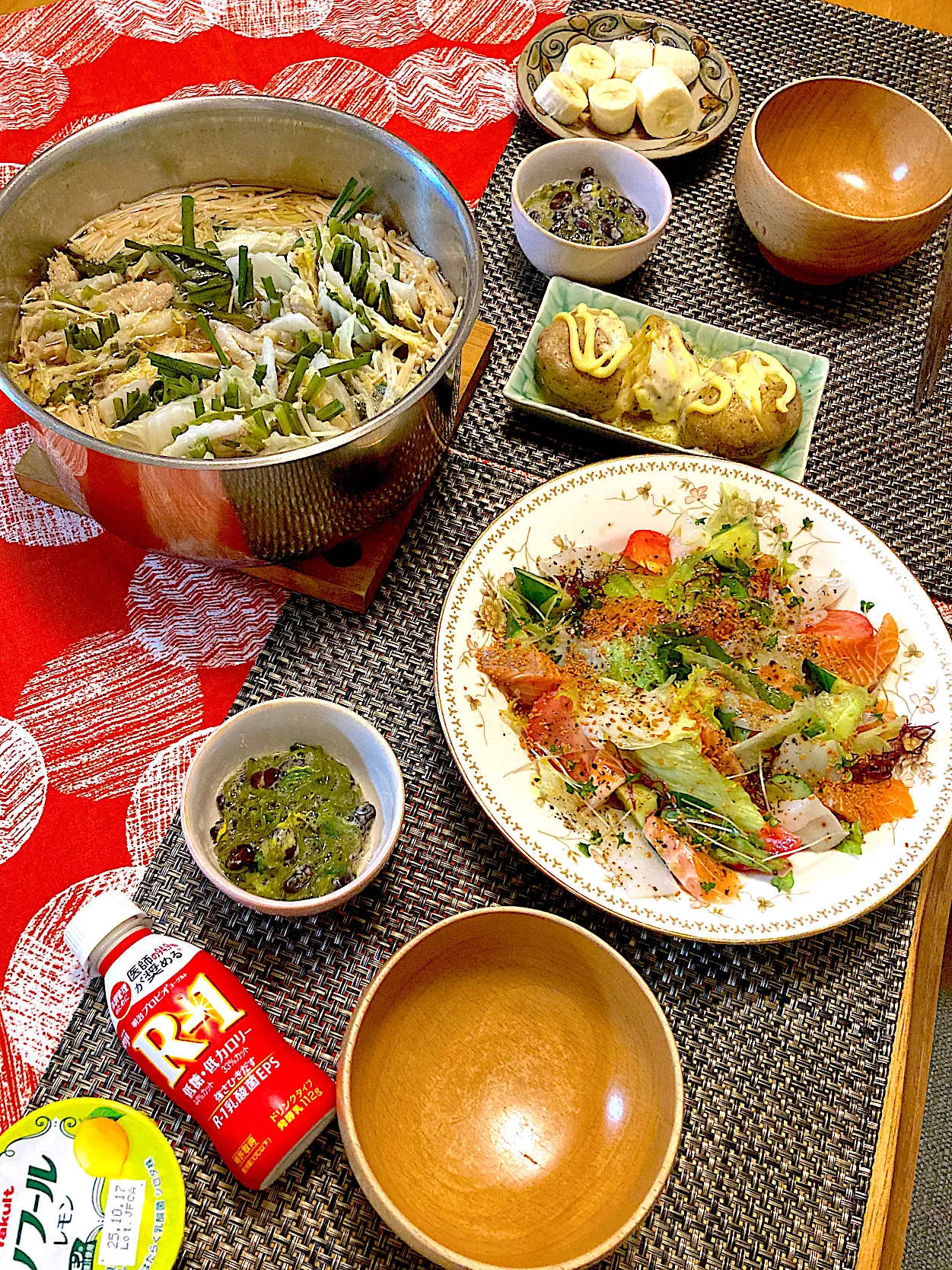 カルパッチョはオリーブオイル、ブラックペッパー、生姜酢、つぶみそ。