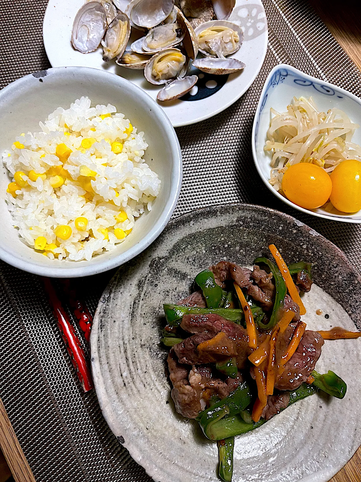新鮮なとうもろこしであまい香りいっぱい。ハラミで青椒肉絲。 #