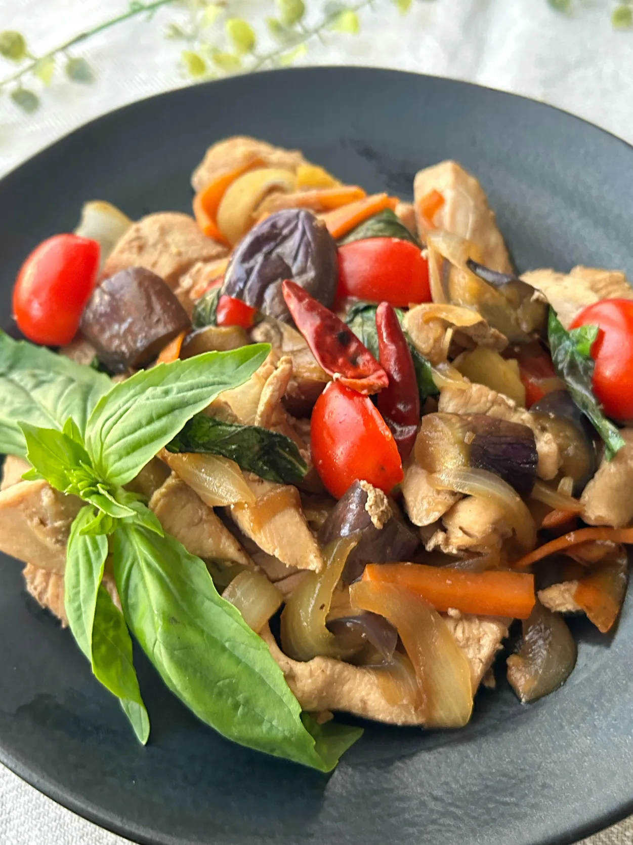 三杯鶏、野菜いっぱいでいいですね〜栄養満点!ご飯も進んじゃいそう😋♪食べた〜い