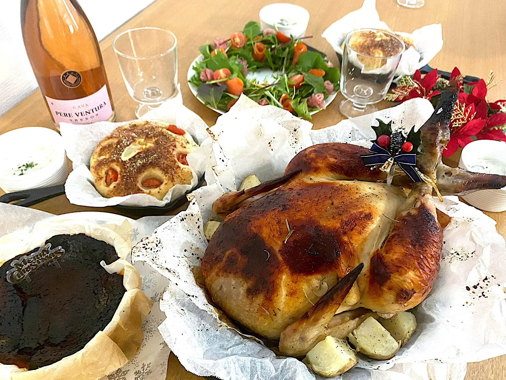 #丸鶏 #フォカッチャ #高加水フォカッチャ #バスクチーズケーキ #バスチー #リースサラダ