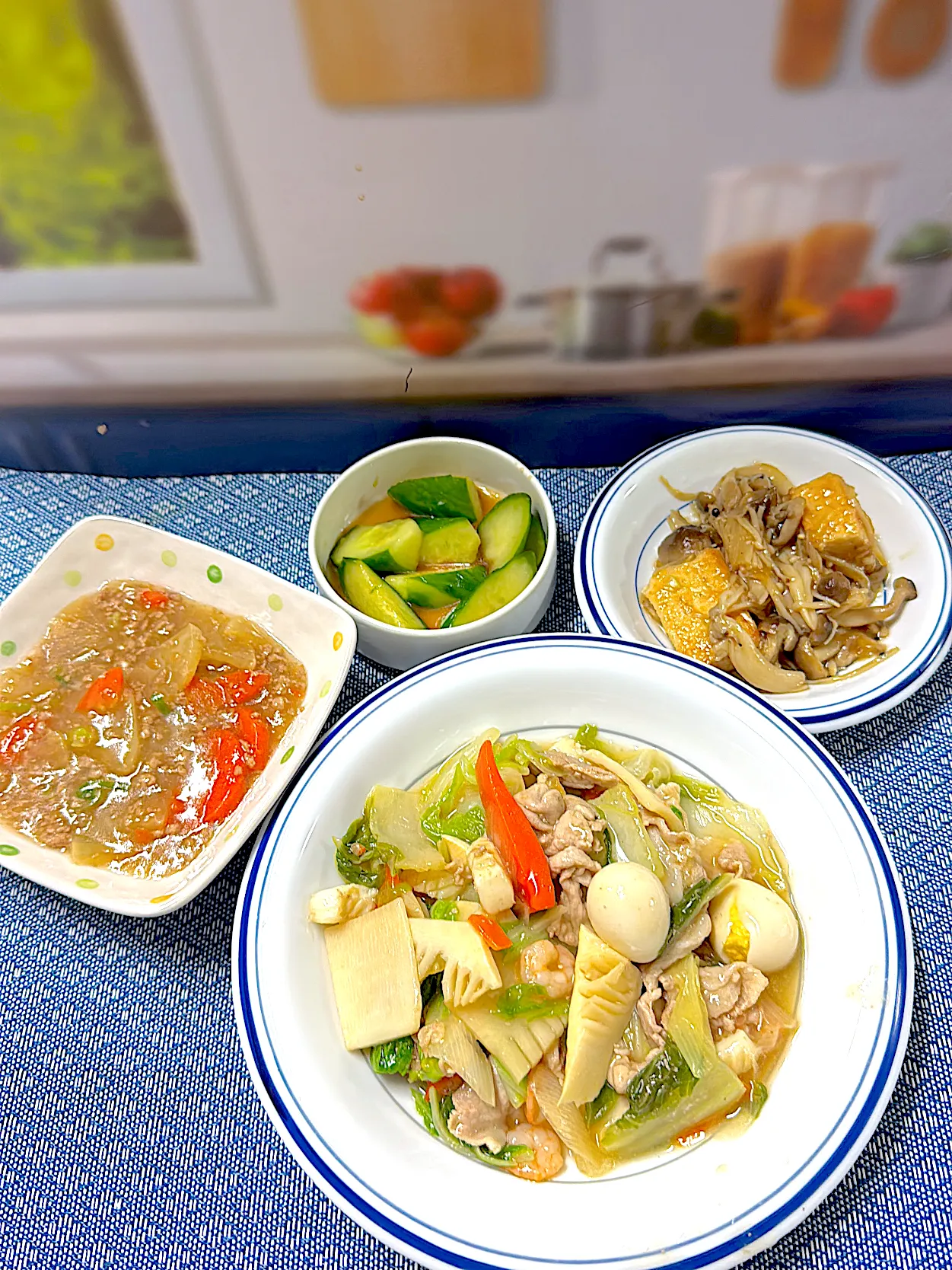 #おうちごはん#晩御飯#八宝菜#大根そぼろ煮#絹揚げきのこ餡掛け