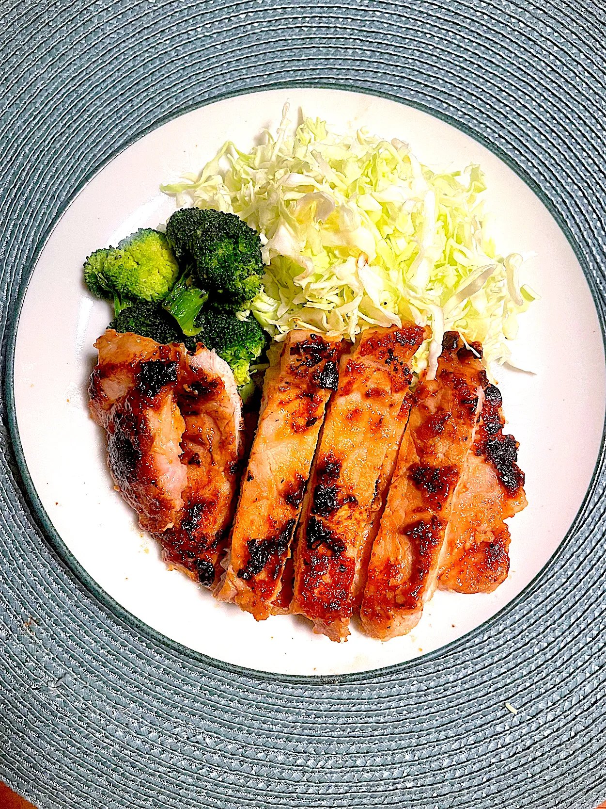 三男の豚の味噌漬け焼きは私の分も乗せて2段重ねなの🤭