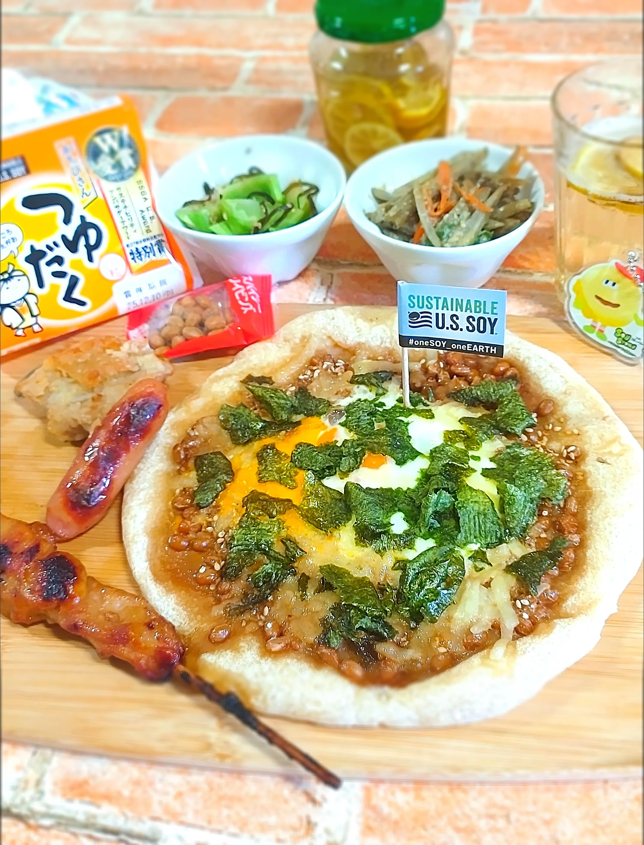 アメリカ産🇺🇸大豆の納豆、卵、海苔で和風ピザ🍕