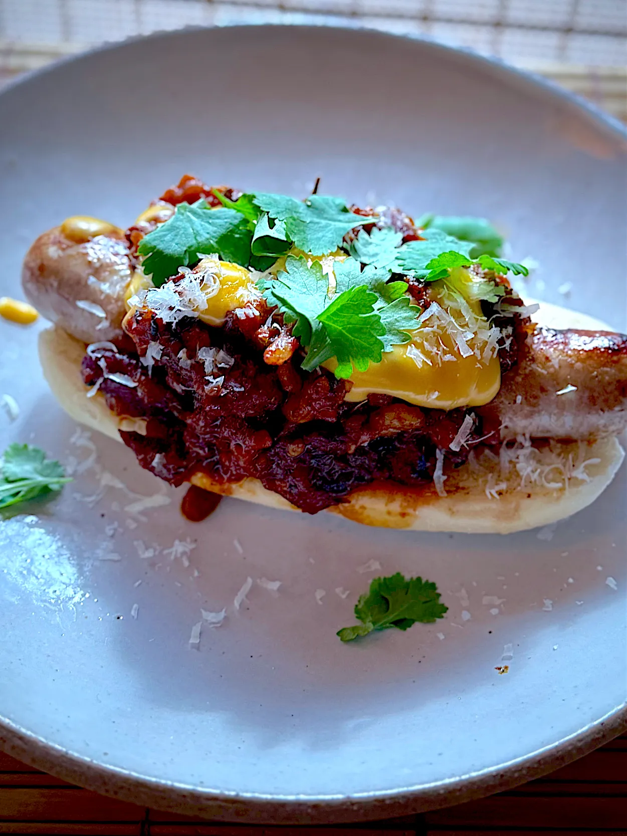 #チリドッグ #ホットドッグ #チリビーンズ #チリコンカンカン #サルシッチャ #チェダー #家庭料理 #モダン料理 #モダンアメリカ料理 #onekiln #onekilnceramics