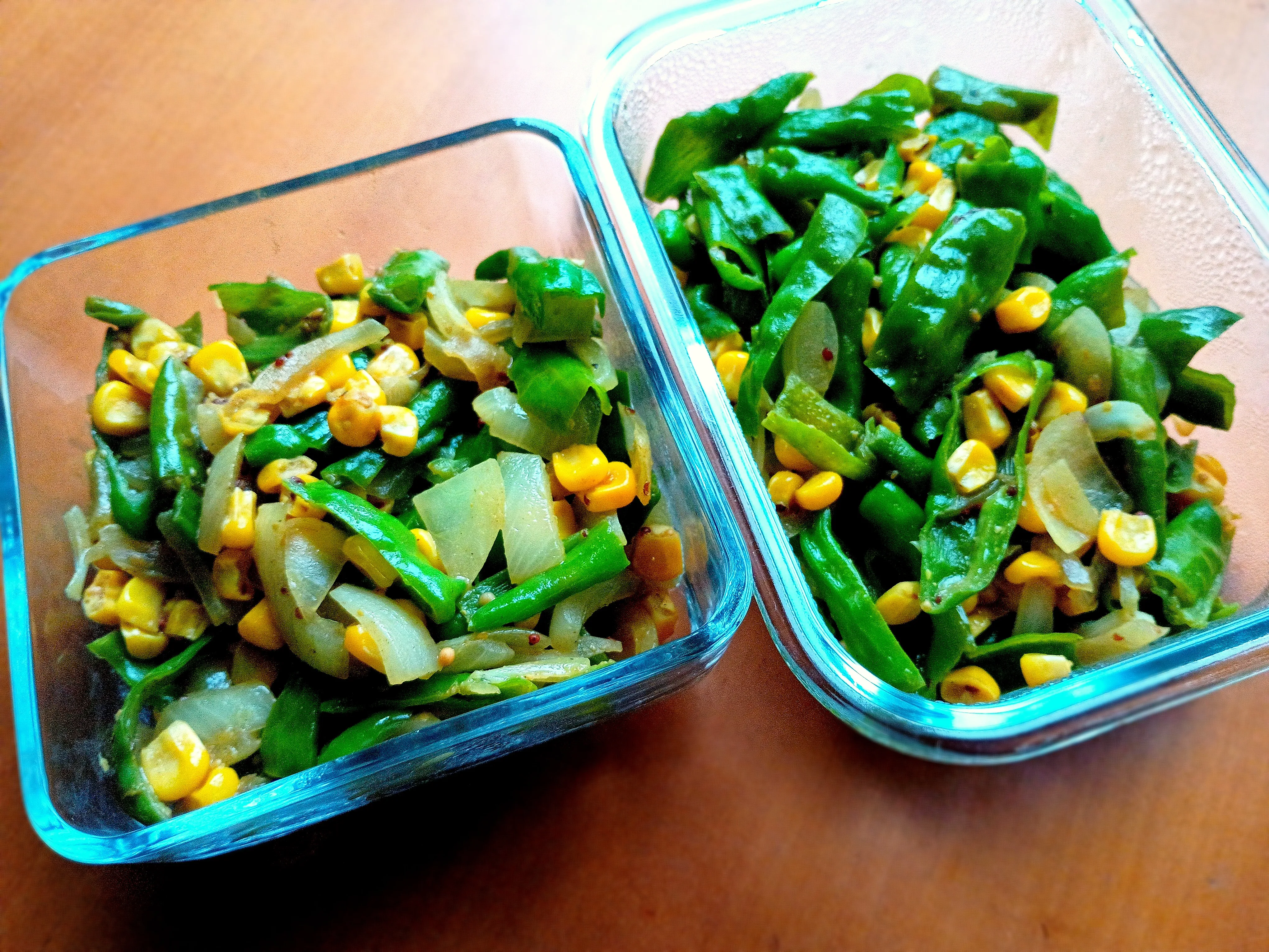 ししとうととうもろこし、私のお気に入り料理になりました✨ししとうの炒め物は食べていて楽しいです🎶本体が辛いのが混じっているのも愛嬌です。