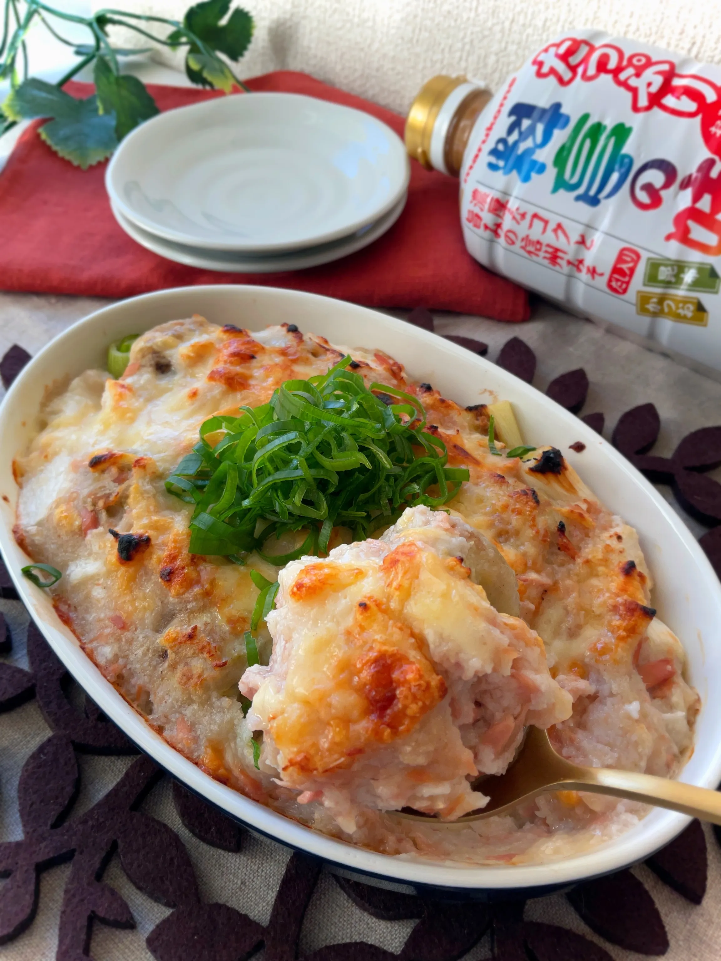 里芋に長ネギ入りなツナ入り長いもソースのグラタン゚+.゚(´▽`人)゚+.゚✨