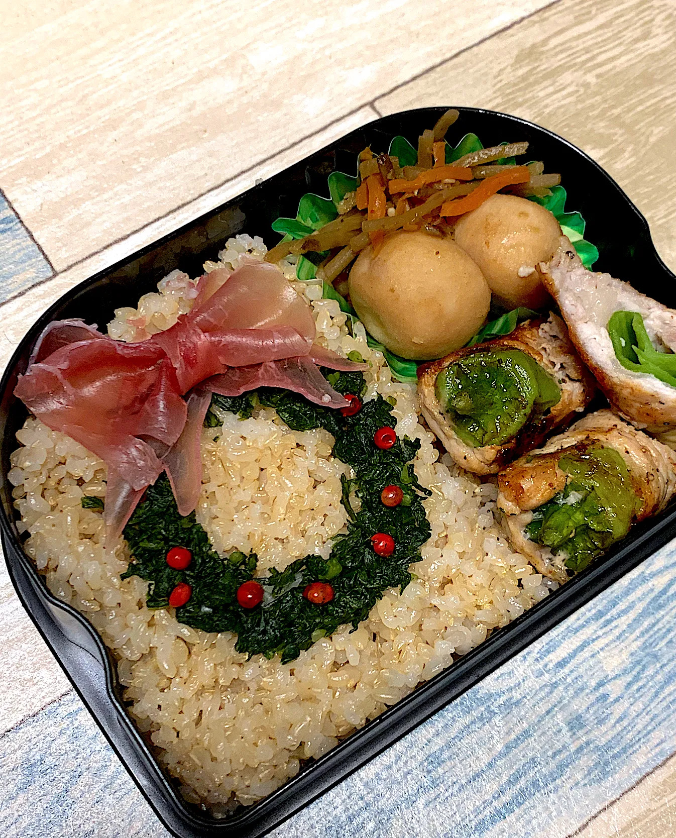 ⭐️玄米に漬物リースと生ハムリボン🎀