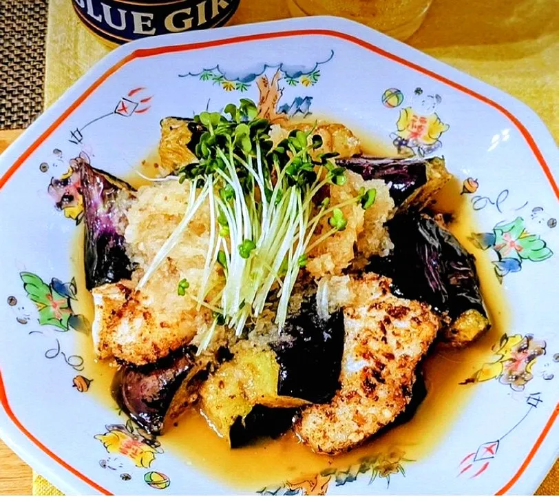 【主菜】松茸のお吸い物で鱈と茄子の揚げびたし