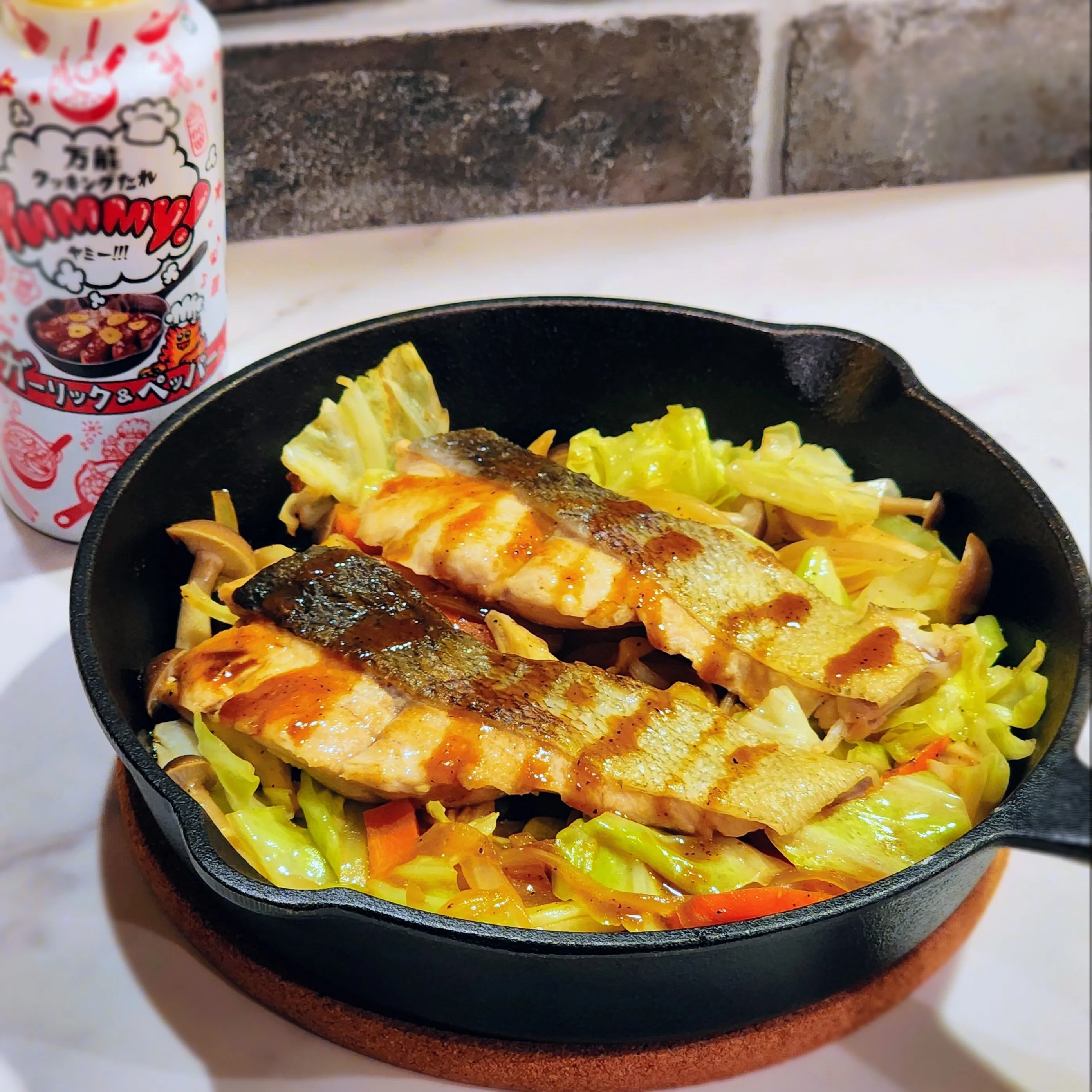 ホットプレートが無いのでスキレットで作りました👩🍳