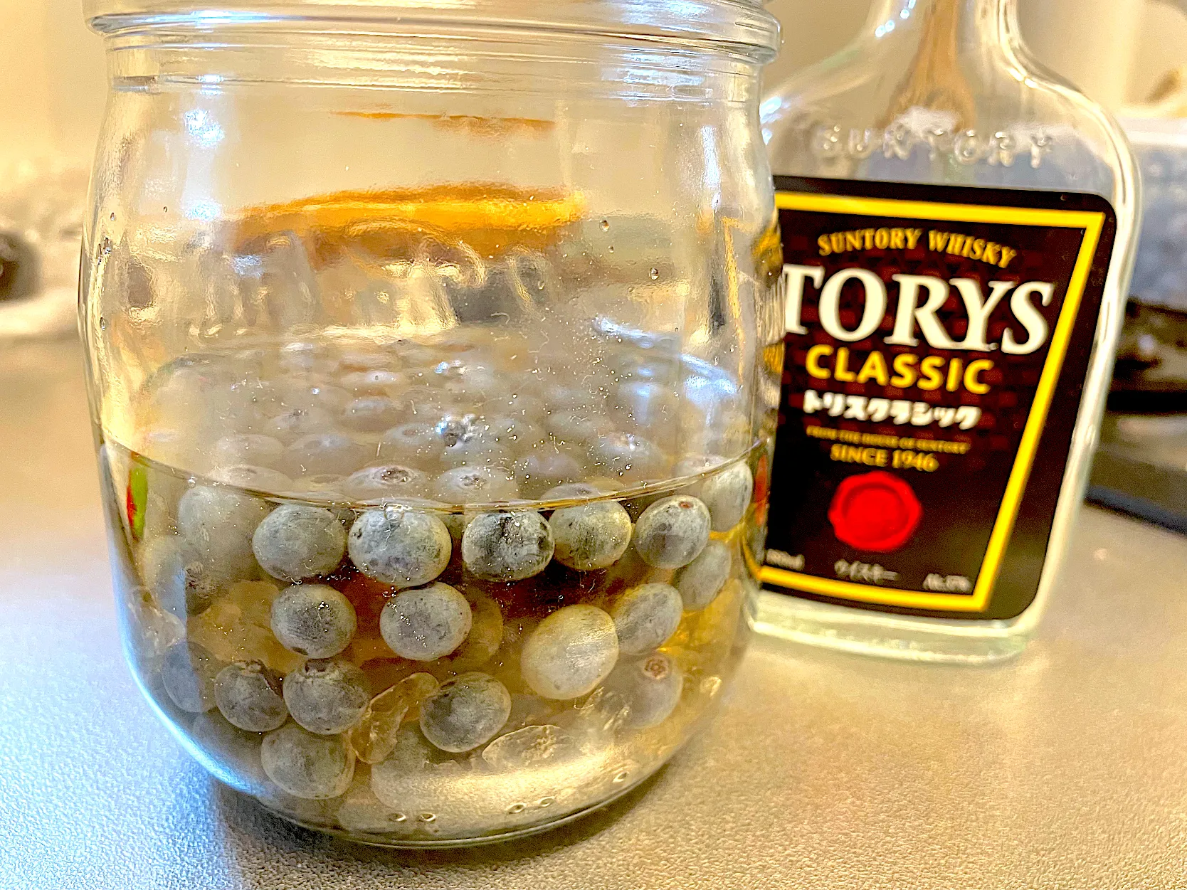 冷暗所で3ヶ月後から飲んでヨシ!それ以上置く場合はブルーベリーは取り出した方がいいかもです。