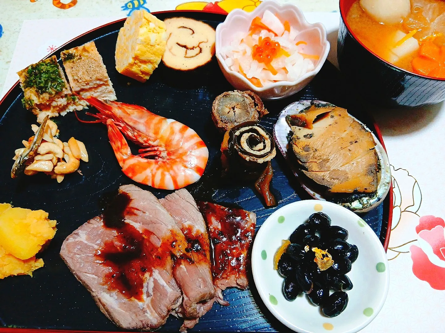 #ローストビーフ#黒豆#栗金団#ナッツ田作り
