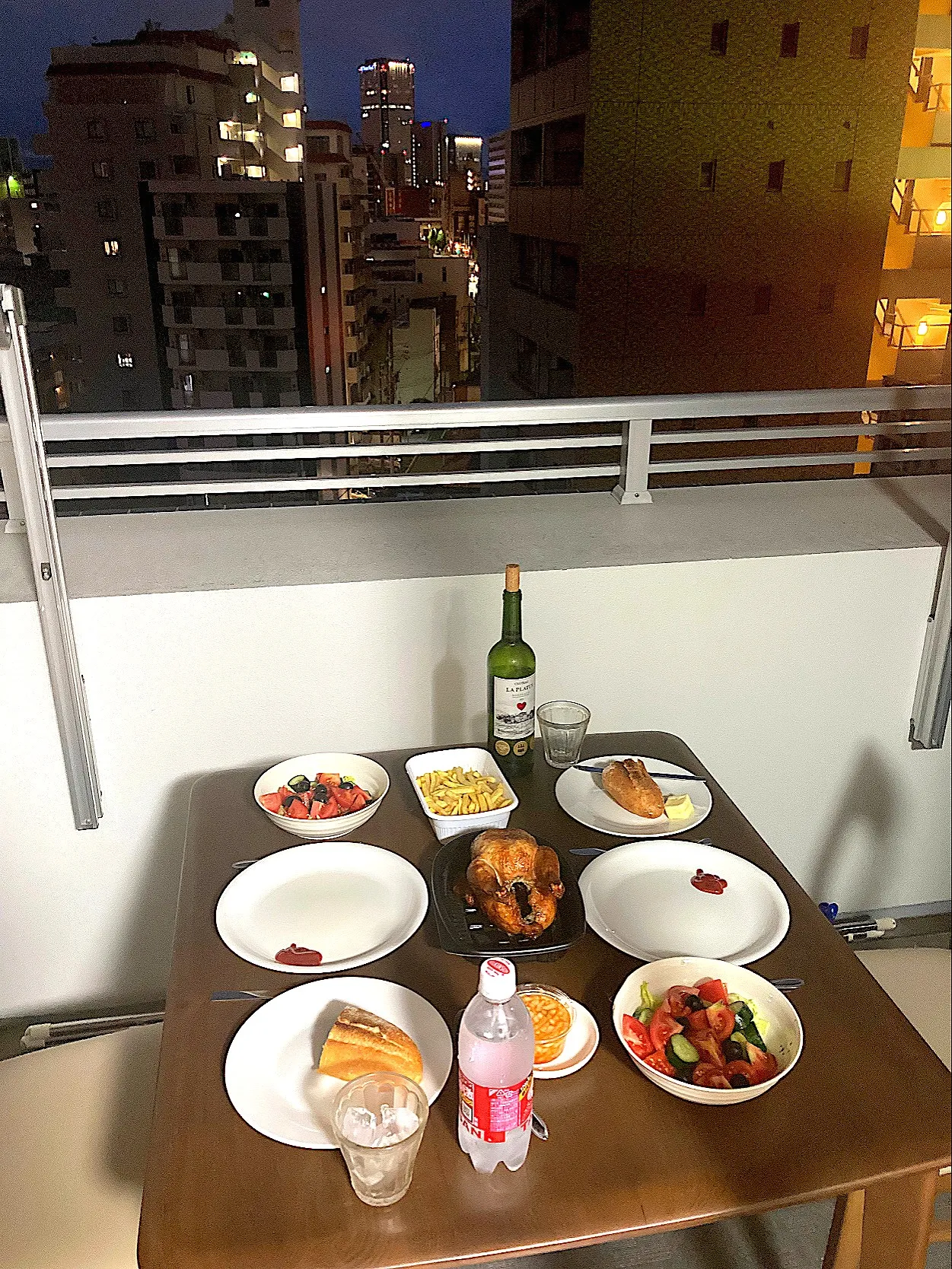 大須商店街の「オッソブラジル」さんで鶏の丸焼きを買ってきて、ベランダでブラジルパーティー🎉