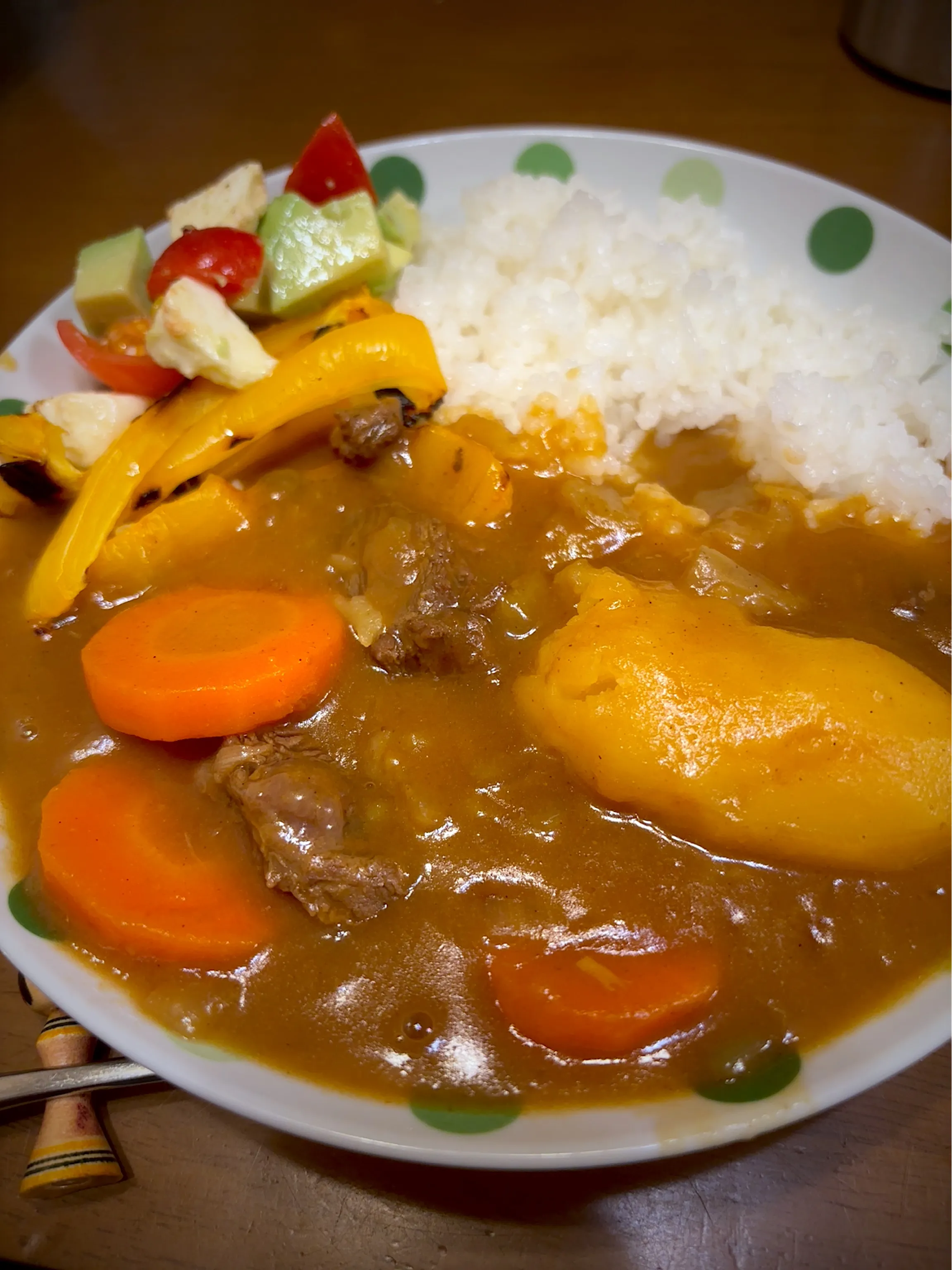 彩りを考え買ってきた、パプリカをグリルして添えてみました