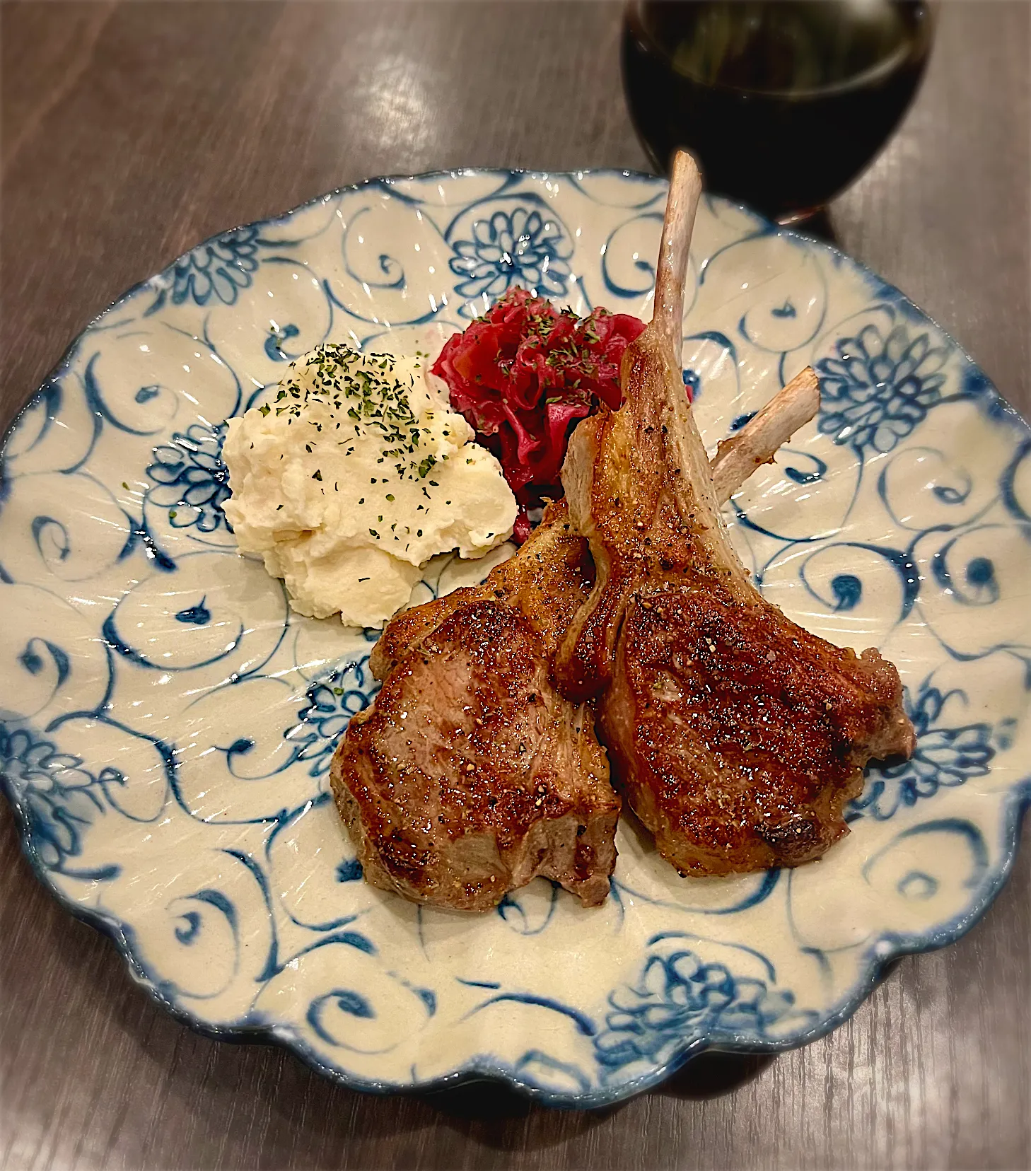 ラムチョップステーキ/紫キャベツりんご煮/マッシュポテト