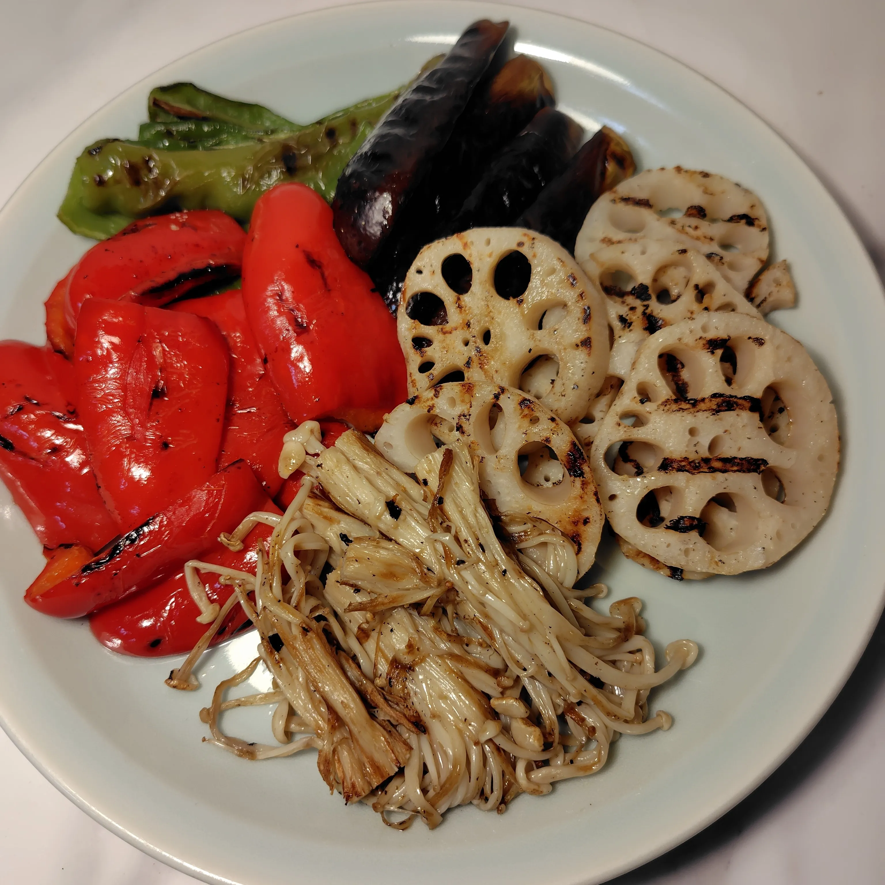 たた、野菜に塩、ブラックペッパー、オリーブオイルで和えて焼くだけです