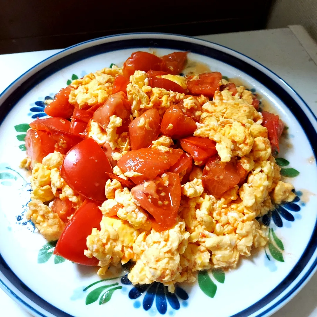 マヨネーズを混ぜた卵を大きめのいり卵にして出しておいて、軽く炒めたざく切りトマトとあわすだけ。