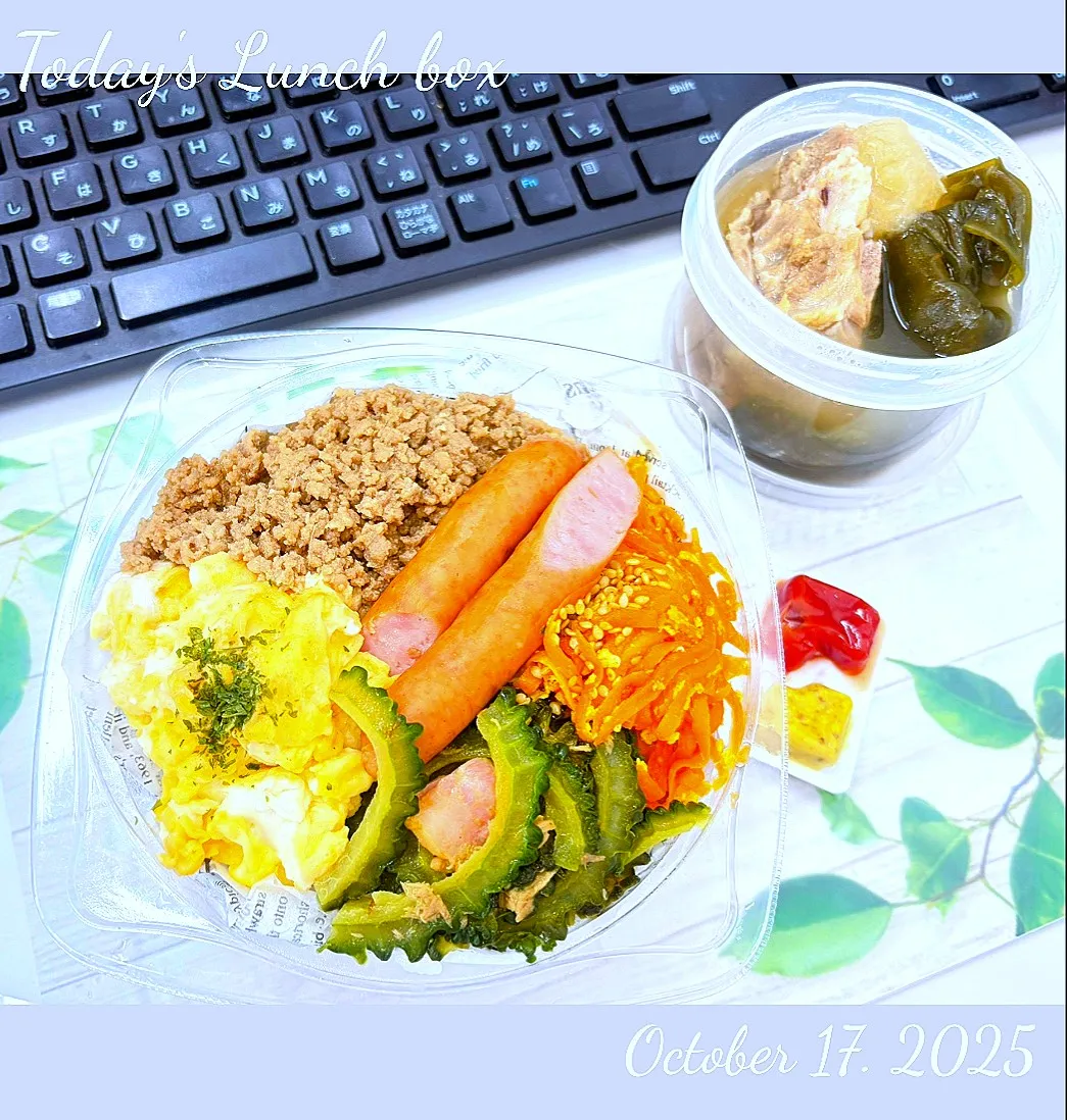 今週ラストはつくり置きのそぼろと人参しりしりを活用した #5種ののっけ弁当 に