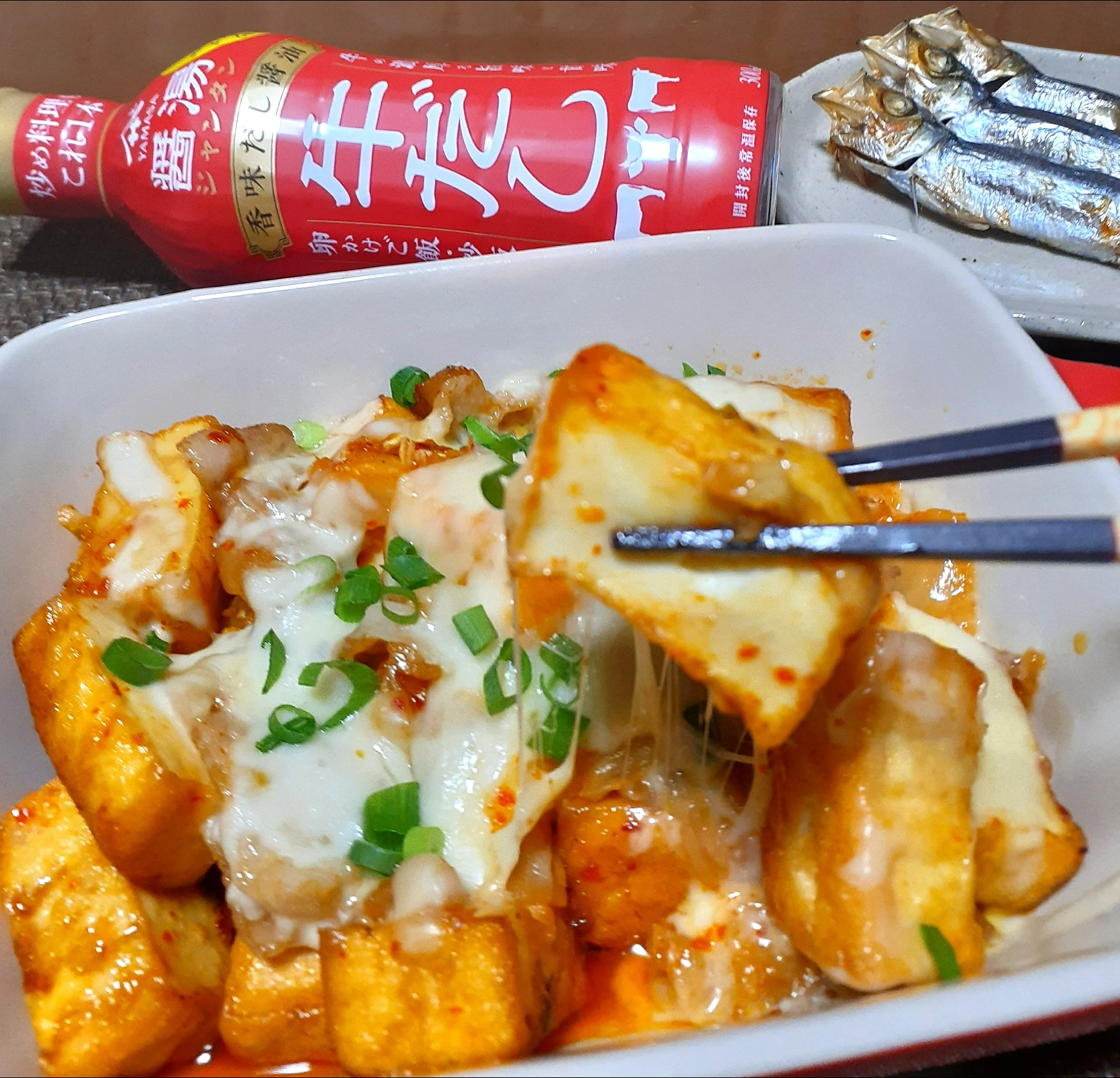 厚揚げもこんな風にキムチとチーズで