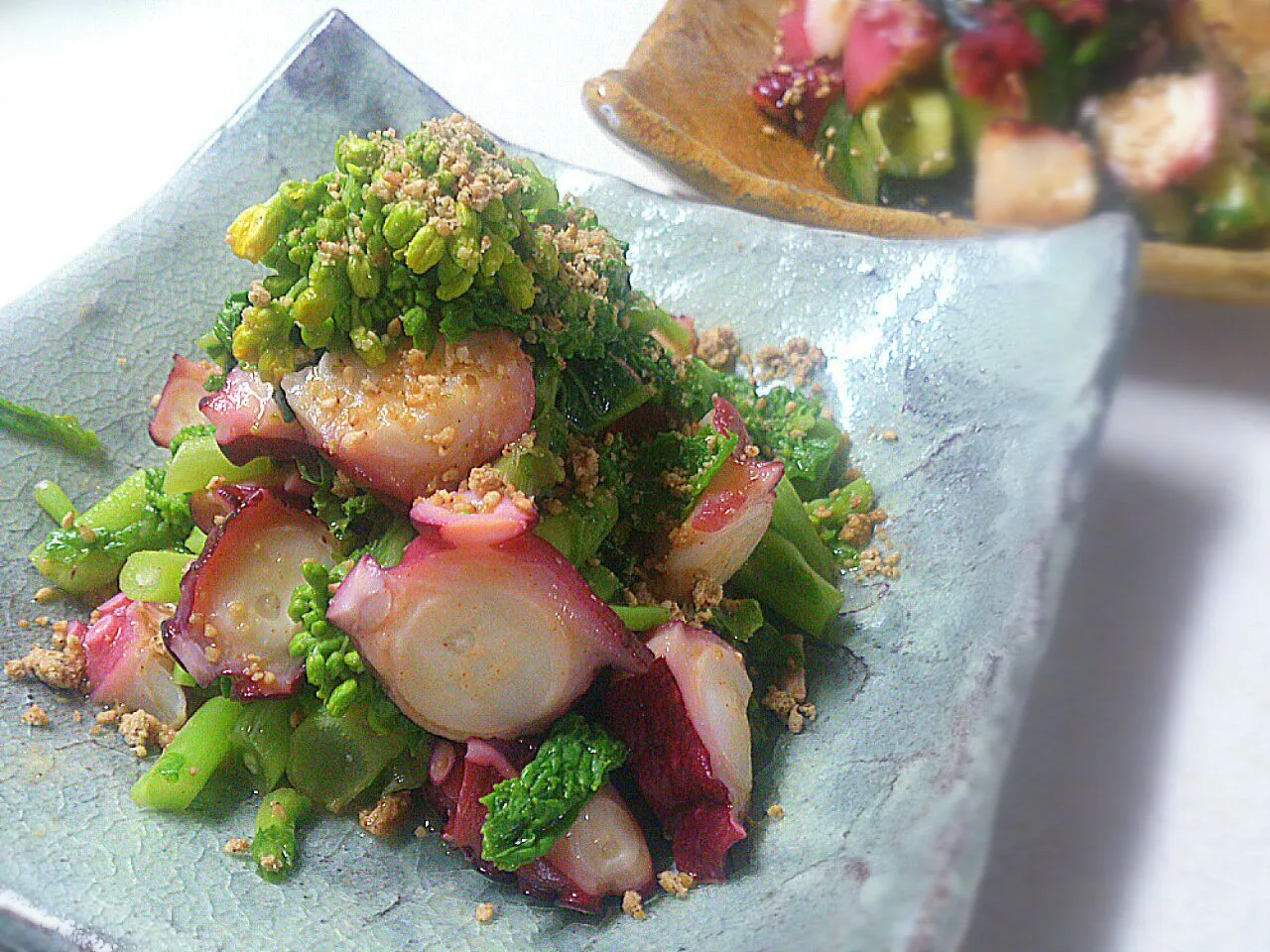 調味料は同じで、分量とキュウリを菜の花に変ええただけなんですが、また違った美味しさで頂けました(*^^*)