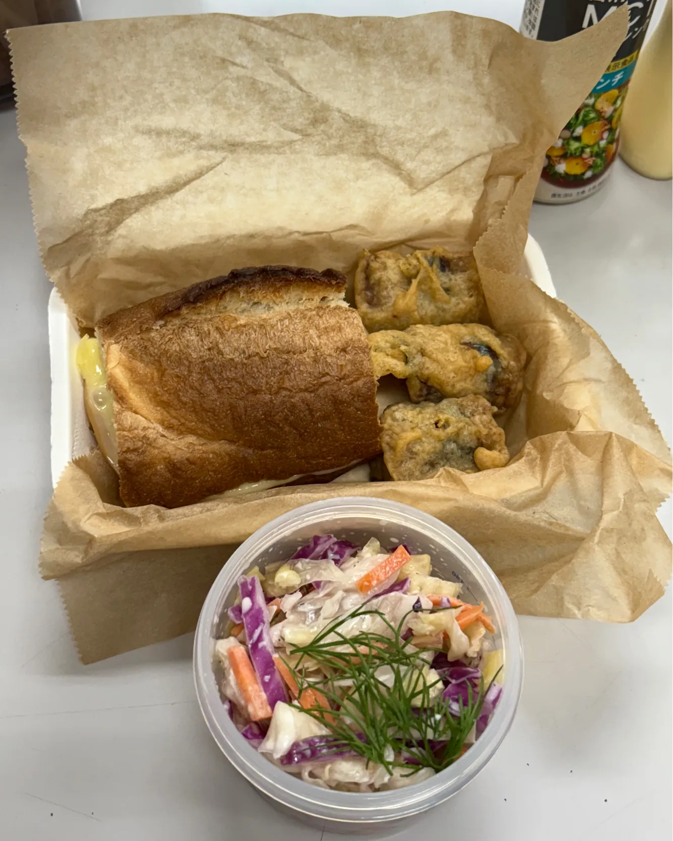 #真心いきいき弁当 #しごべん #弁当 #秋刀魚 #さんま #サンマ #さんまのフリット #フリット #コールスロー #サラダ #バゲットサンド #サンドイッチ