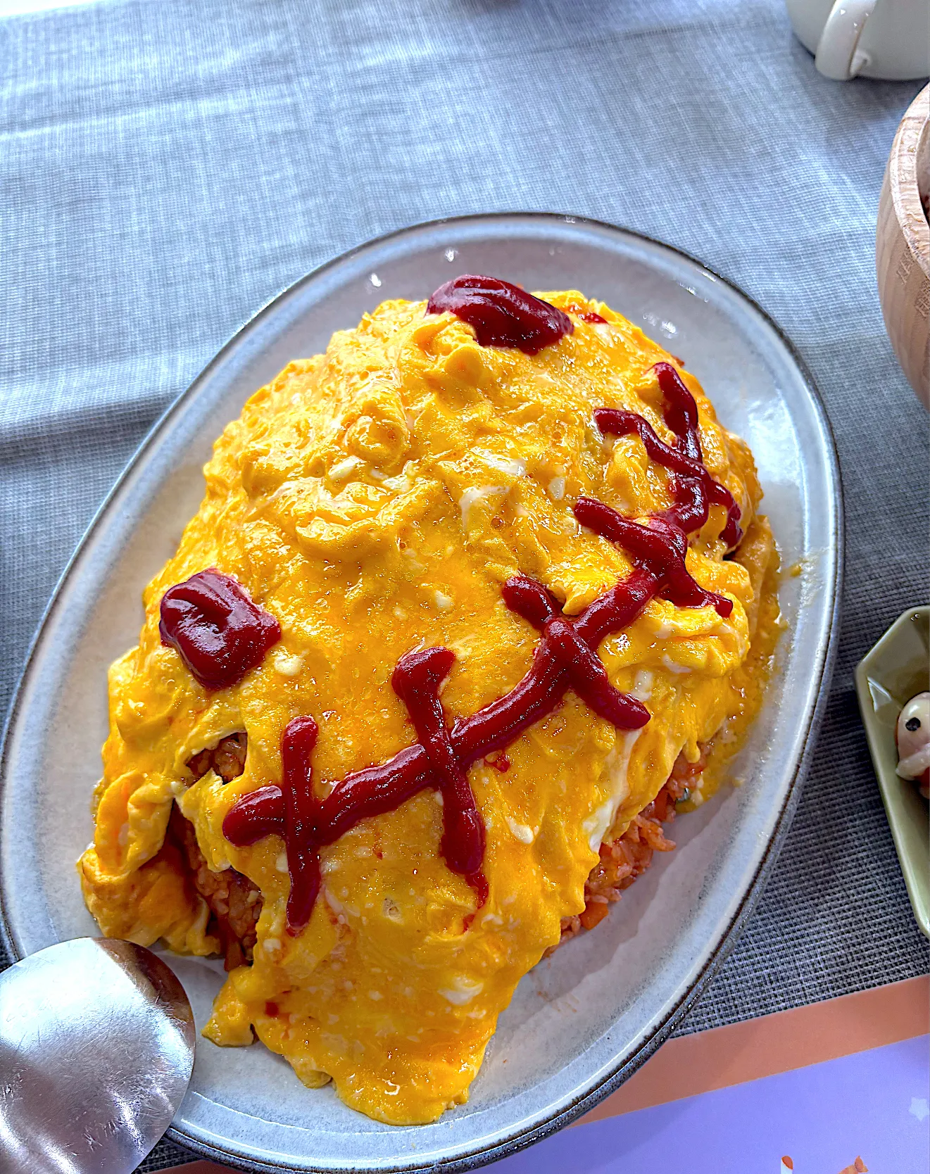 オムライスとかぼちゃのポタージュのおぼんごはん