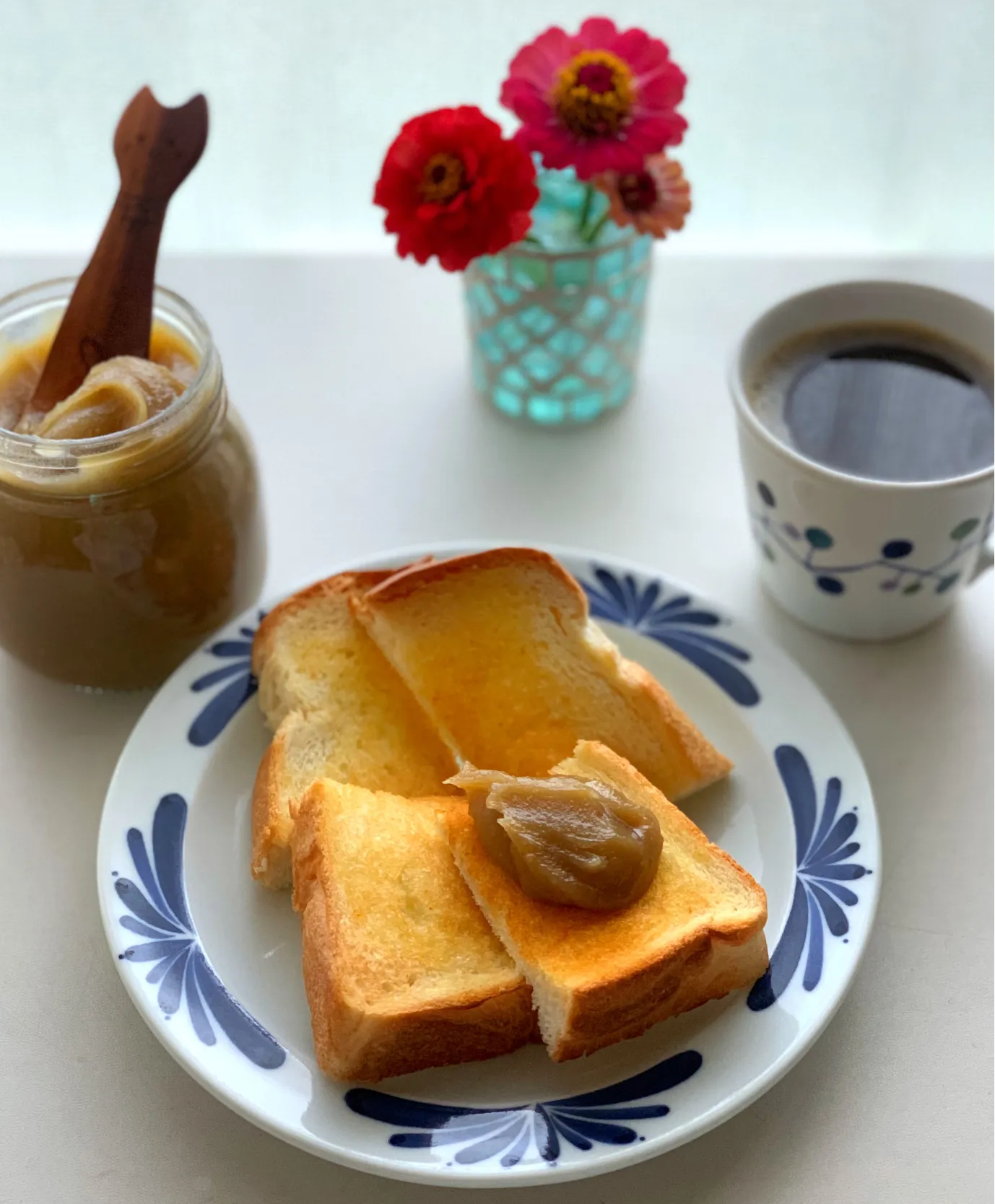 きび砂糖なので、ちょっと色味が濃くなってます。初めてジャムにしたけど、美味しすぎてめちゃくちゃお気に入りになりました。