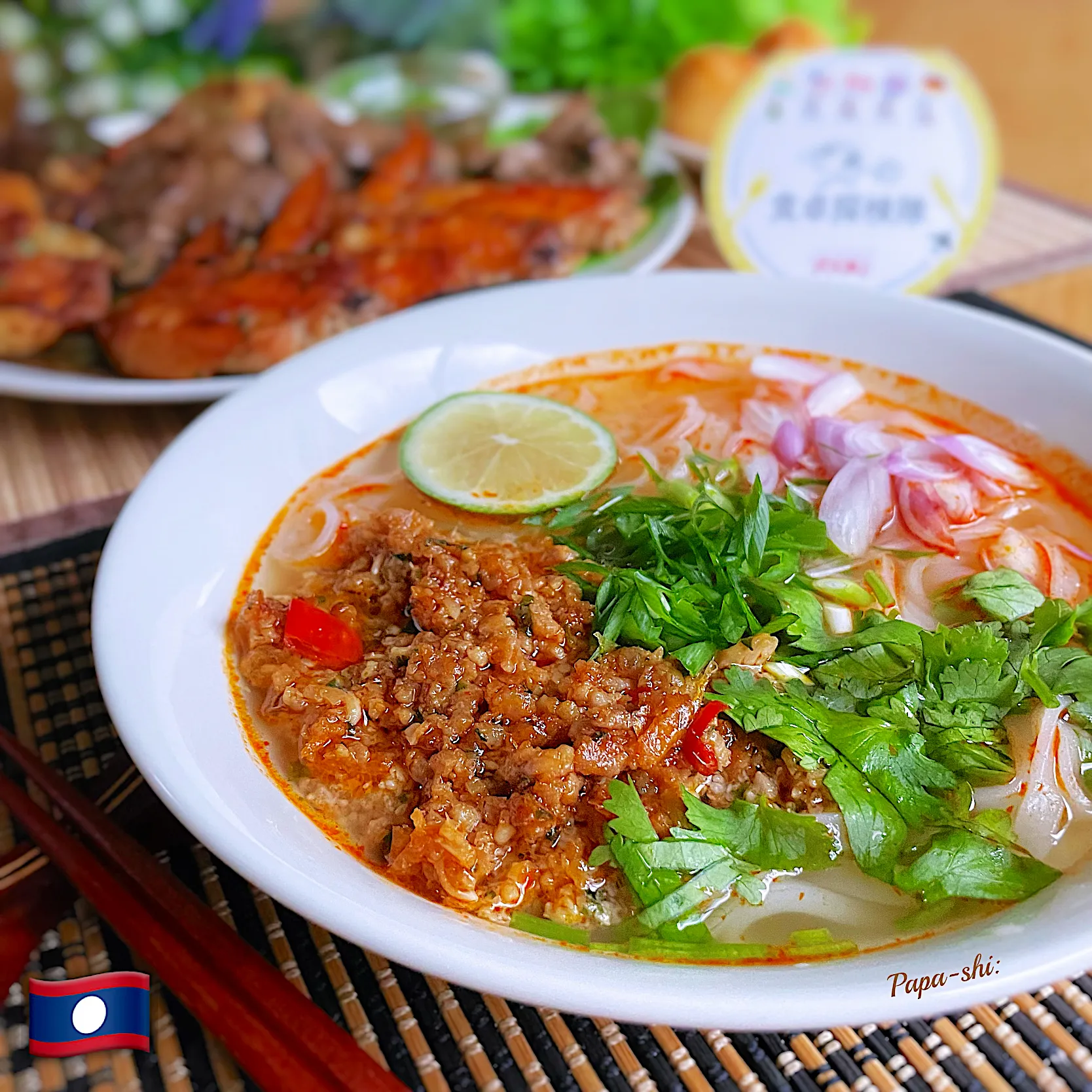 #ユウキ食品 #マコーミック #おいしい世界ごはん #おいしい世界ごはんパートナー #おいしい世界ごはんパートナーゴールド #世界の食卓探検隊 #ラオス #ラオス料理 #カオソーイ #赤唐辛子酢漬け #青唐辛子酢漬け #サンバル #ナンプラー #ライムリーフ #麺 #麺料理