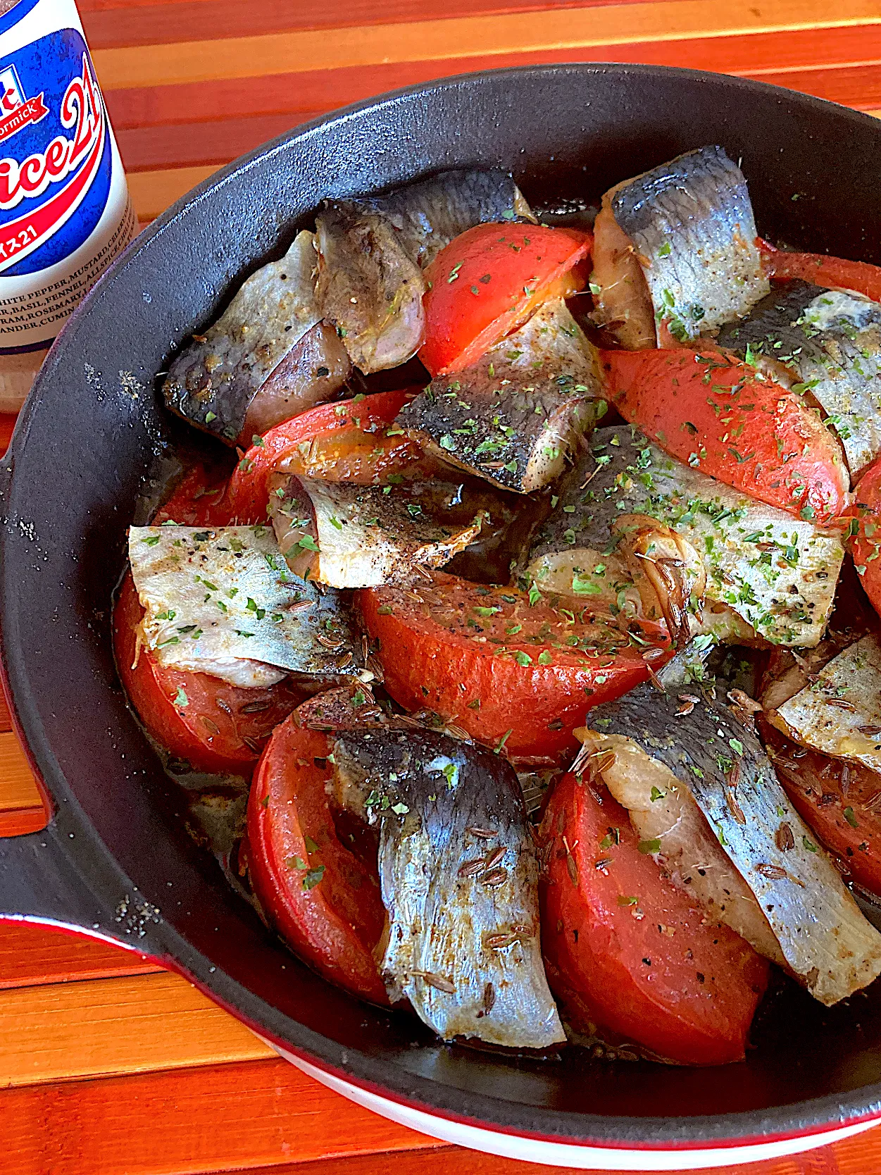 なんとなく焼いたら美味しいアテになりました🍅🐟