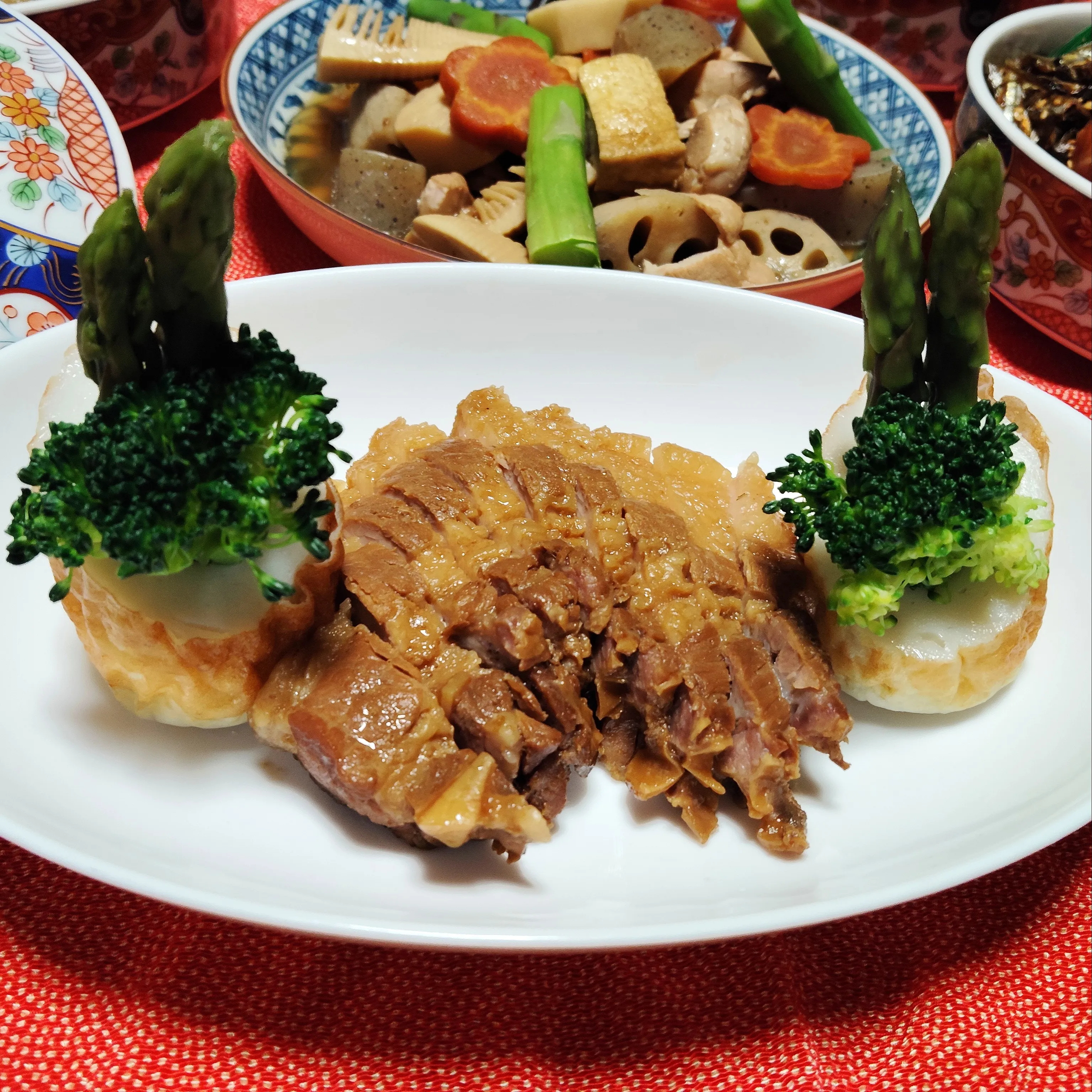 依光蒲鉾さんの竹つきの肉厚の竹輪で、門松風に。アスパラとブロッコリーイン。