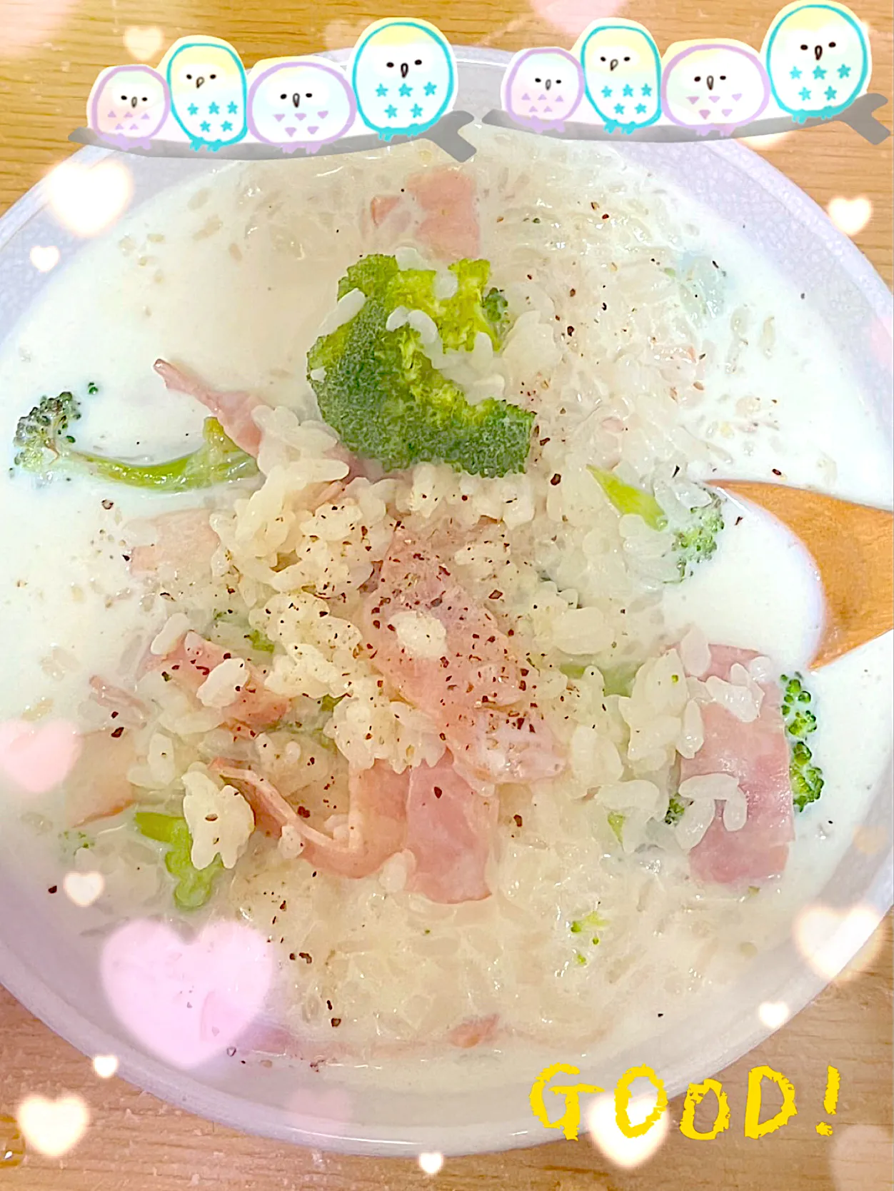 ブロッコリー🥦とベーコン🥓のチーズ🧀リゾット‼️