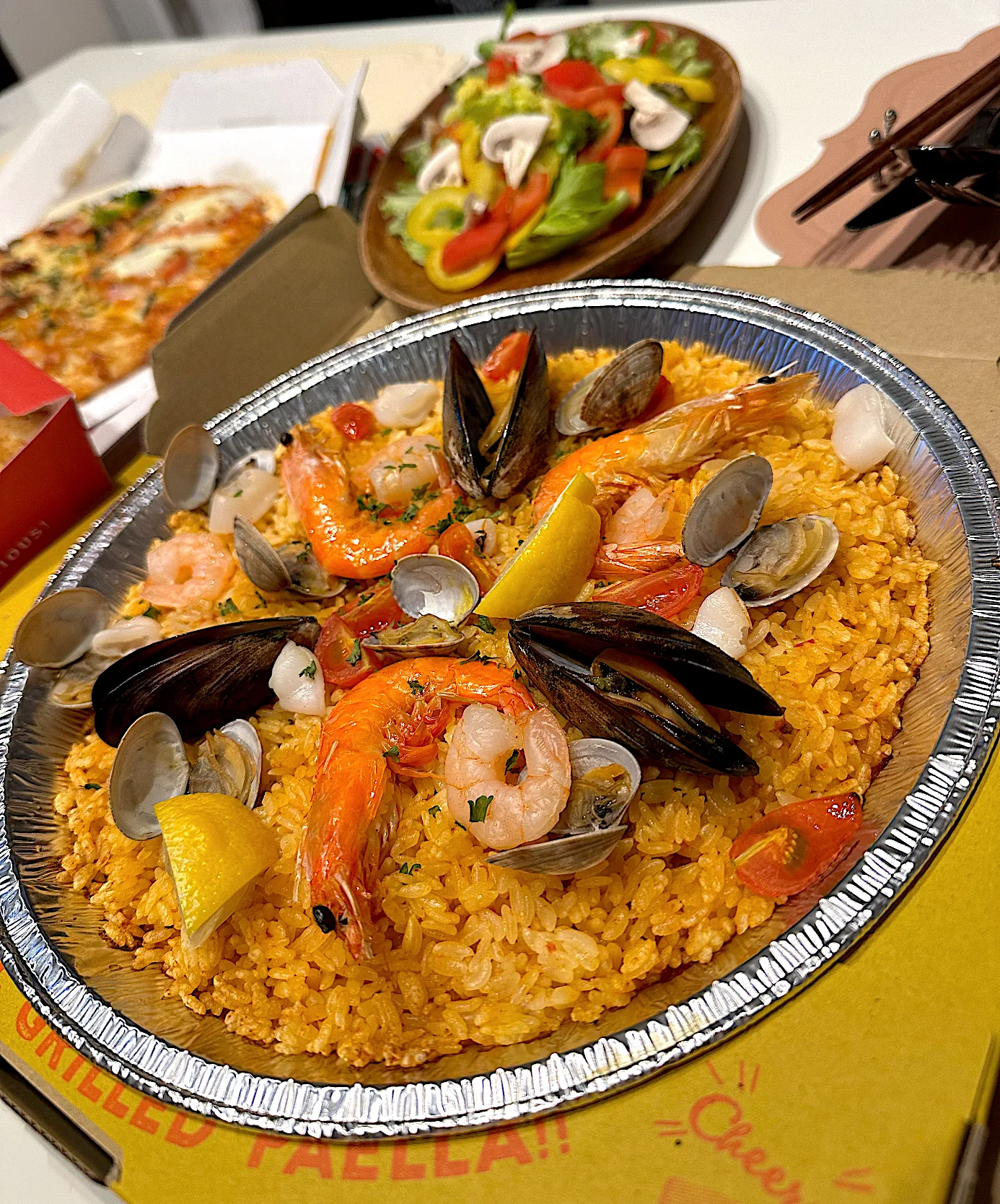 Pizza◯◯でパエリア🥘😋