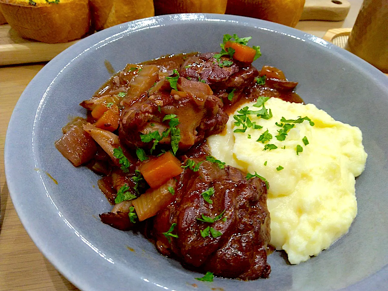 #鶏もも肉 #フランス料理 #フレンチ #赤ワイン #コックオーヴァン #じゃがいものピュレ