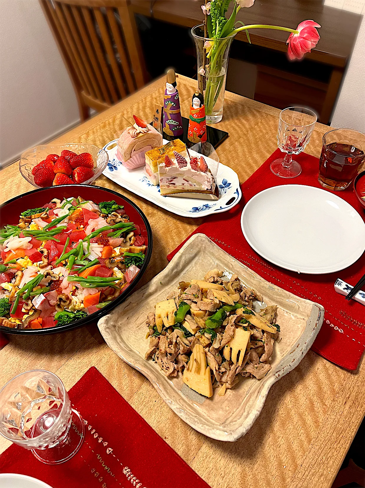 毎年同じメニューですが、今年も家族でちらし寿司食べることができました😊
