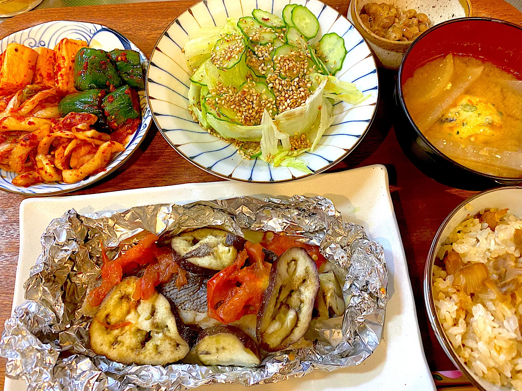 タラのムニエル🐟帆立の炊き込みご飯🍚