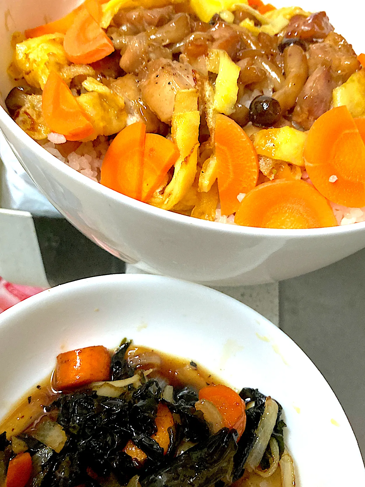 • 鶏皮唐揚げ梅ソースサラダ、なめ茸、ブリ大根| まみみさん
